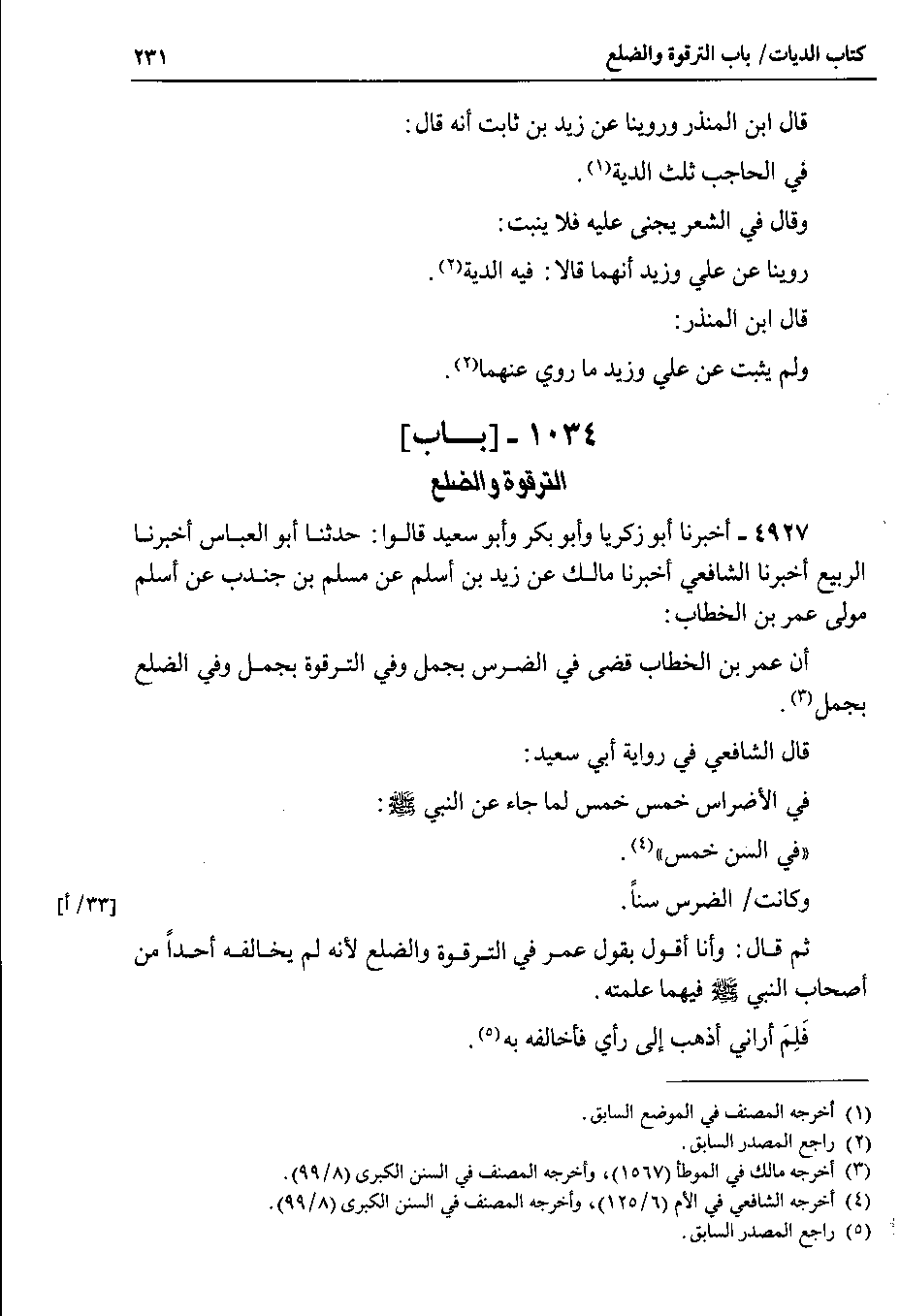 4927 - أخبرنا أبو زكريا وأبو بكر وأبو سعيد قالوا : حدثنا أبو العباس أخبرنا الربيع أخبرنا الشافعي أخبرنا مالك عن زيد بن أسلم عن مسلم بن جندب عن أسلم مولى عمر بن الخطاب : أن عمر بن الخطاب قضى في الضرس بجمل وفي الترقوة بجمل وفي الضلع بجمل.