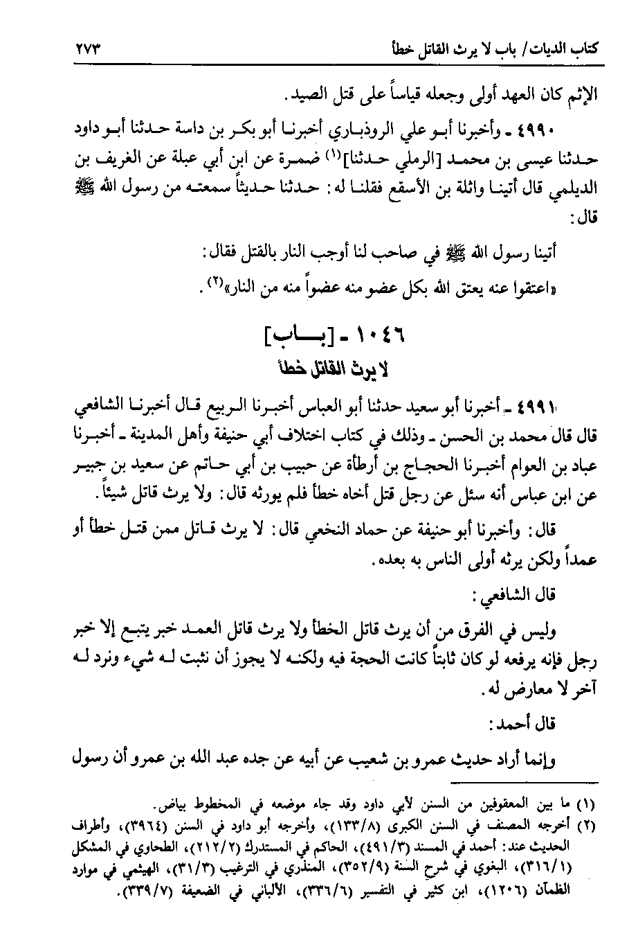 4991 - أخبرنا أبو سعيد حدثنا أبو العباس أخبرنا الربيع قال أخبرنا الشافعي قال قال محمد بن الحسن - وذلك في كتاب اختلاف أبي حنيفة وأهل المدينة - أخبرنا عباد بن العوام أخبرنا الحجاج بن أرطاة عن حبيب بن أبي حاتم عن سعيد بن جبير عن ابن عباس أنه سئل عن رجل قتل أخاه خطأ فلم يورثه قال : ولا يرث قاتل شيئاً.