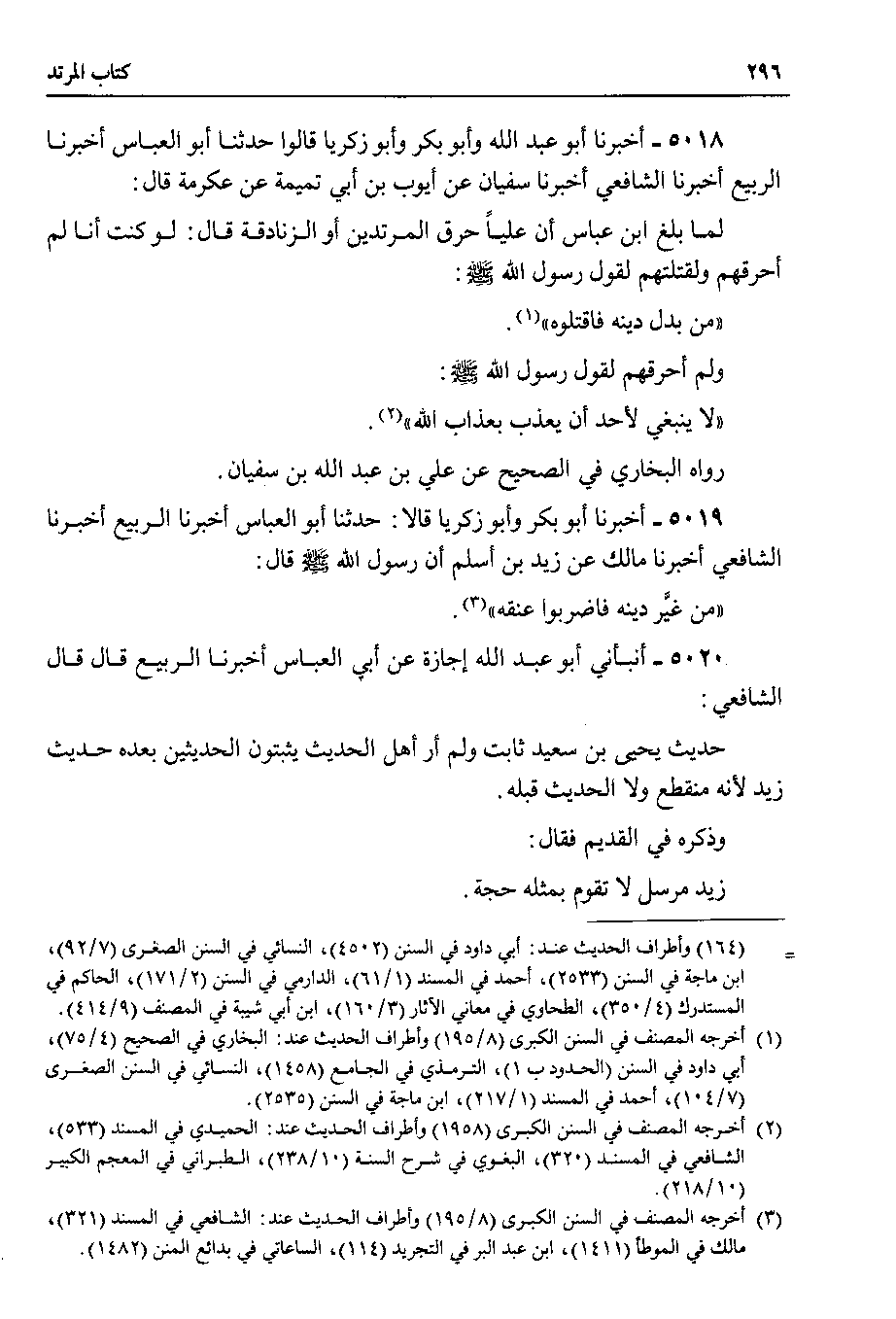 5019 - أخبرنا أبو بكر وأبو زكريا قالا : حدثنا أبو العباس أخبرنا الربيع أخبرنا الشافعي أخبرنا مالك عن زيد بن أسلم أن رسول الله صلى الله عليه وسلم قال : من غيَّر دينه فاضربوا عنقه.