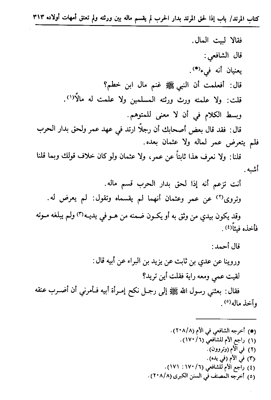 قال : أفعلمت أن النبي صلى الله عليه وسلم غنم مال ابن خطم ؟ قلت : ولا علمته ورث ورثته المسلمين ولا علمت له مالاً.