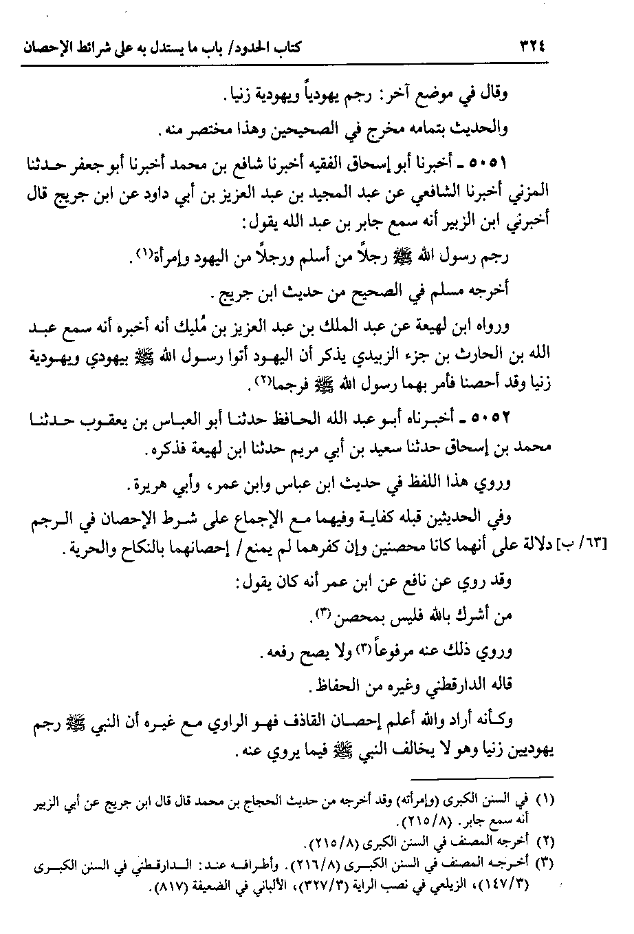 5051 - أخبرنا أبو إسحاق الفقيه أخبرنا شافع بن محمد أخبرنا أبو جعفر حدثنا المزني أخبرنا الشافعي عن عبد المجيد بن عبد العزيز بن أبي داود عن ابن جريج قال أخبرني ابن الزبير أنه سمع جابر بن عبد الله يقول : رجم رسول الله صلى الله عليه وسلم رجلاً من أسلم ورجلاً من اليهود وإمرأة.