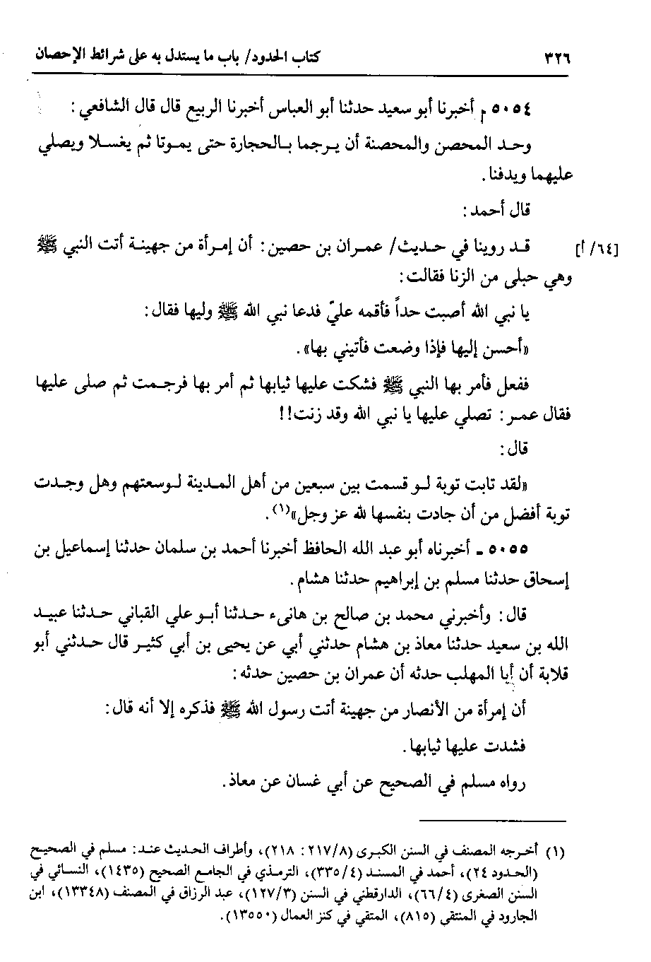 قال : وأخبرني محمد بن صالح بن هانئ حدثنا أبو علي القباني حدثنا عبيد الله بن سعيد حدثنا معاذ بن هشام حدثني أبي عن يحيى بن أبي كثير قال حدثني أبو قلابة أن أبا المهلب حدثه أن عمران بن حصين حدثه : أن إمرأة من الأنصار من جهينة أتت رسول الله صلى الله عليه وسلم فذكره إلا أنه قال : فشدت عليها ثيابها.