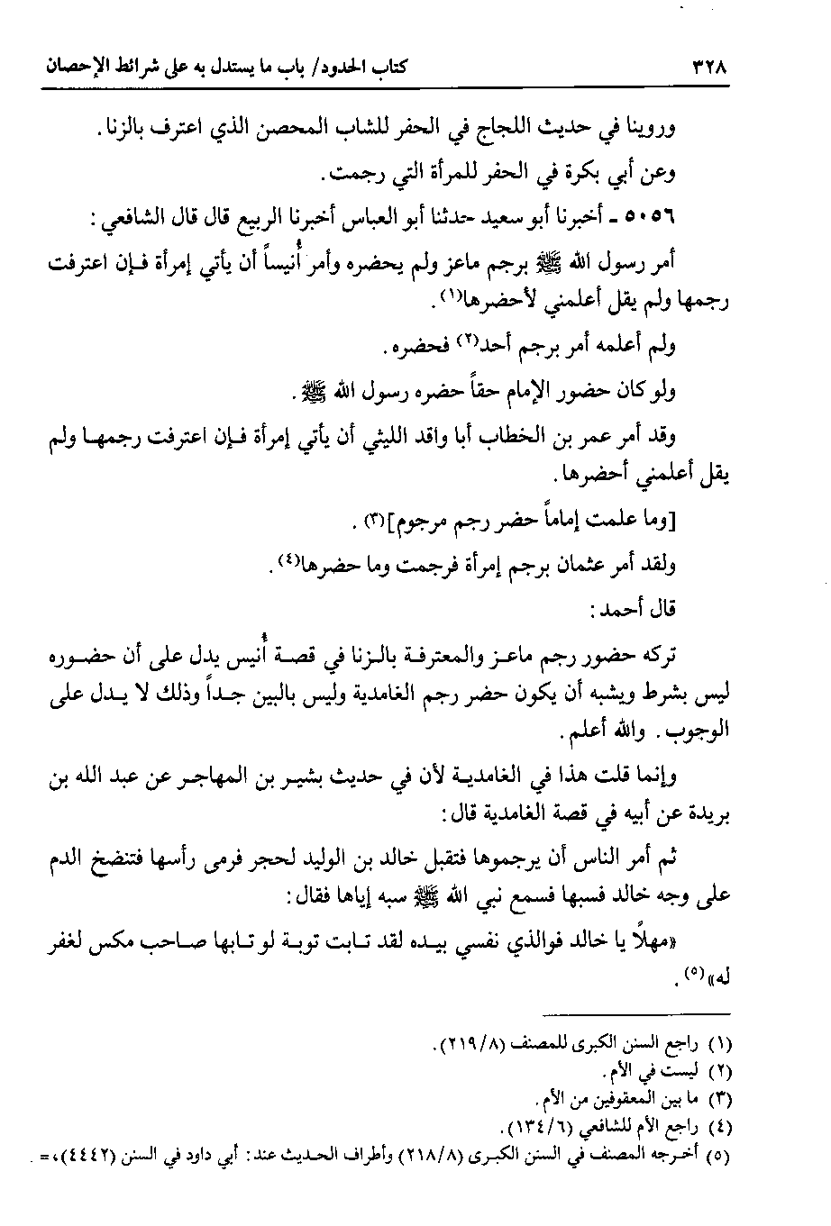 5056 - أخبرنا أبو سعيد حدثنا أبو العباس أخبرنا الربيع قال قال الشافعي : أمر رسول الله صلى الله عليه وسلم برجم ماعز ولم يحضره وأمر أُنيساً أن يأتي إمرأة فإن اعترفت رجمها ولم يقل أعلمني لأحضرها.