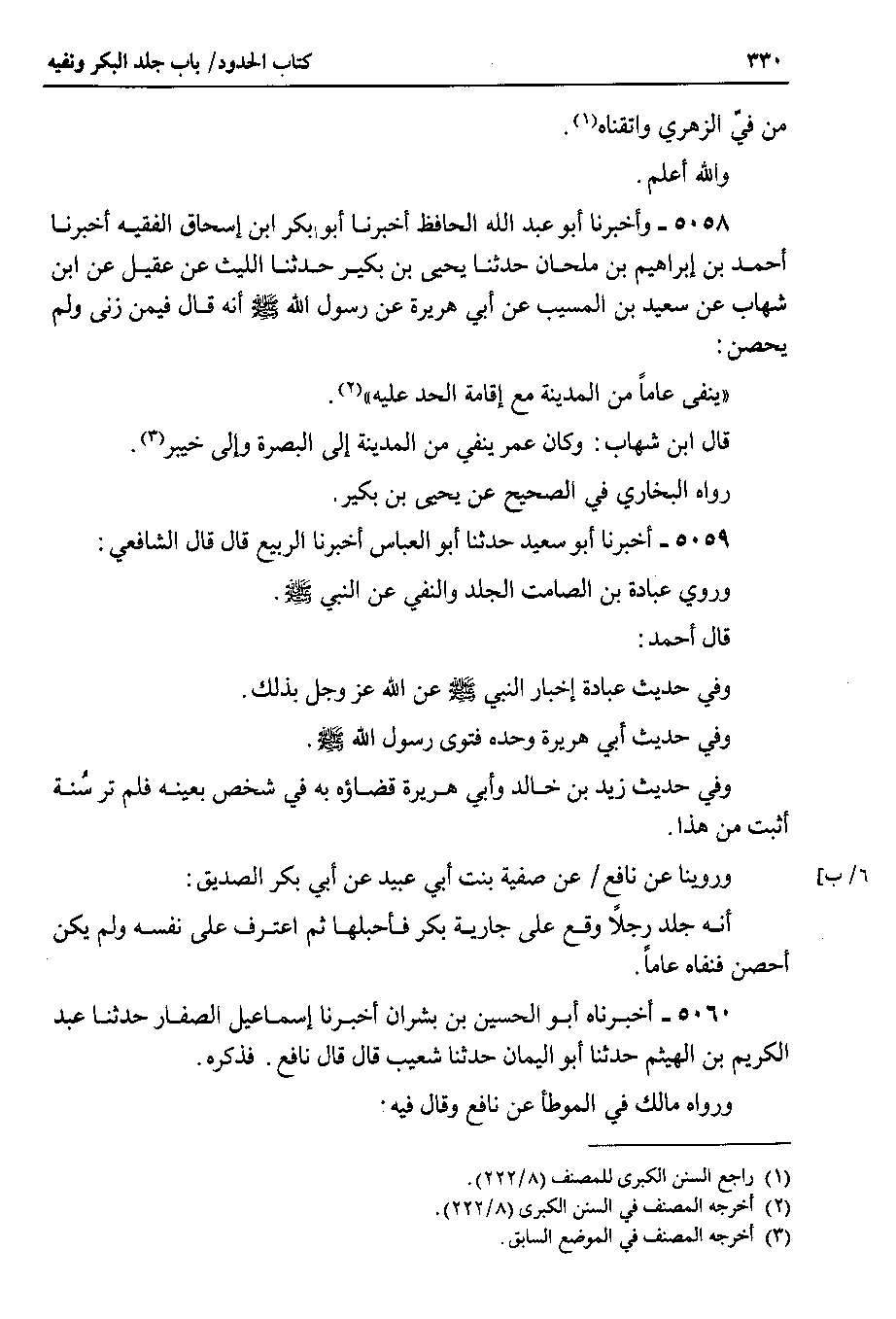 5058 - وأخبرنا أبو عبد الله الحافظ أخبرنا أبو بكر ابن إسحاق الفقيه أخبرنا أحمد بن إبراهيم بن ملحان حدثنا يحيى بن بكير حدثنا الليث عن عقيل عن ابن شهاب عن سعيد بن المسيب عن أبي هريرة عن رسول الله صلى الله عليه وسلم أنه قال فيمن زنى ولم يحصن : ينفى عاماً من المدينة مع إقامة الحد عليه.