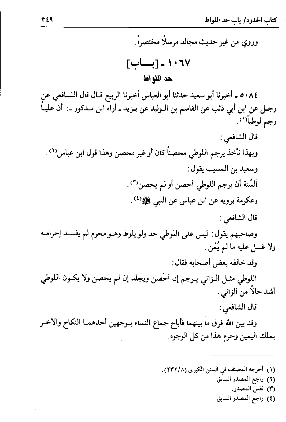 قال الشافعي : وبهذا نأخذ يرجم اللوطي محصناً كان أو غير محصن وهذا قول ابن عباس.