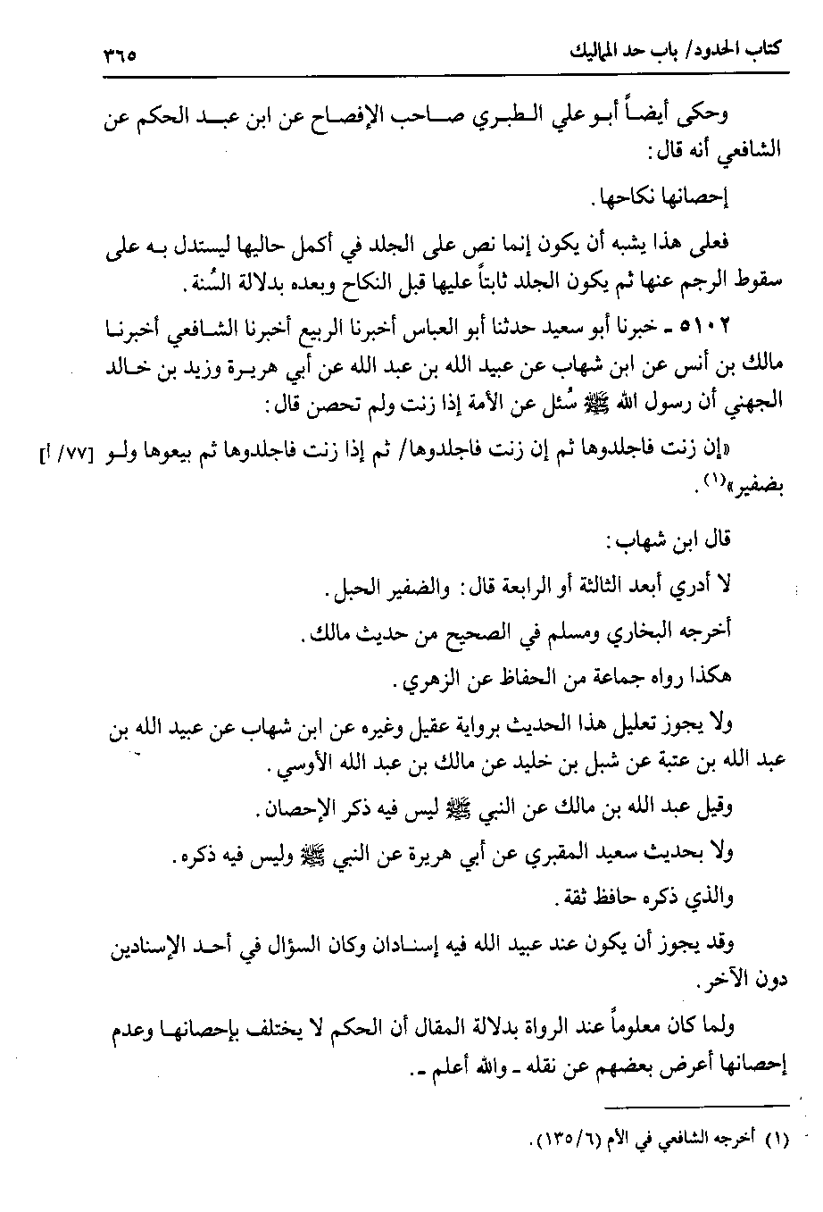 وقيل عبد الله بن مالك عن النبي صلى الله عليه وسلم ليس فيه ذكر الإحصان.