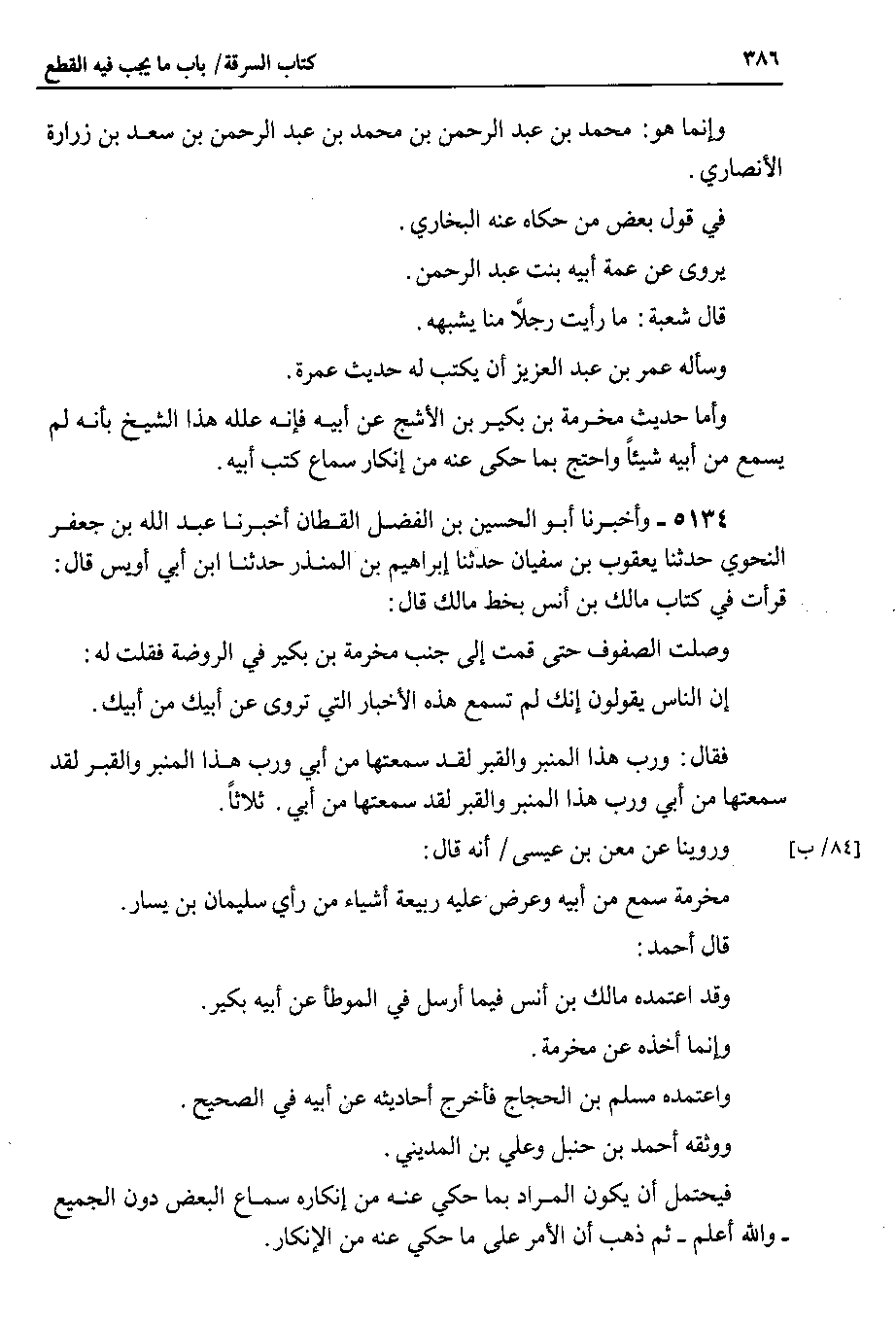5134 - وأخبرنا أبو الحسين بن الفضل القطان أخبرنا عبد الله بن جعفر النحوي حدثنا يعقوب بن سفيان حدثنا إبراهيم بن المنذر حدثنا ابن أبي أويس قال : قرأت في كتاب مالك بن أنس بخط مالك قال : وصلت الصفوف حتى قمت إلى جنب مخرمة بن بكير في الروضة فقلت له : إن الناس يقولون إنك لم تسمع هذه الأخبار التي تروى عن أبيك من أبيك.