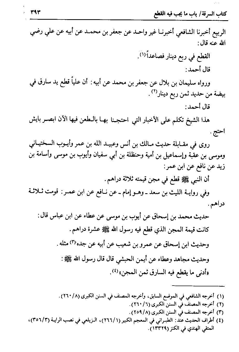قال أحمد : ورواه سليمان بن بلال عن جعفر بن محمد عن أبيه : أن علياً قطع يد سارق في بيضة من حديد ثمن ربع دينار.