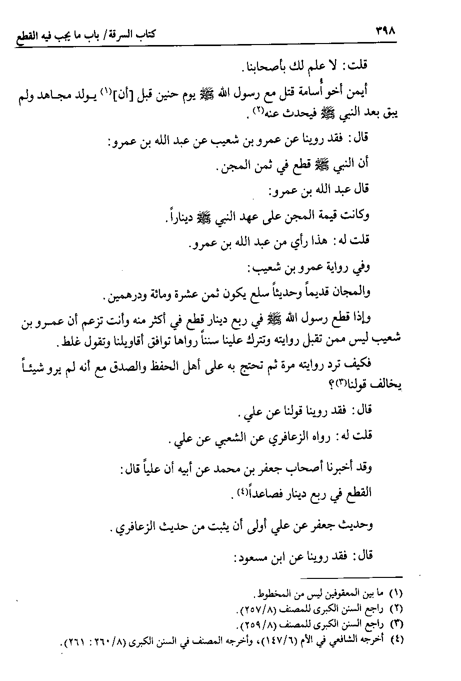 وإذا قطع رسول الله صلى الله عليه وسلم في ربع دينار قطع في أكثر منه وأنت تزعم أن عمرو بن شعيب ليس ممن تقبل روايته وتترك علينا سنناً رواها توافق أقاويلنا وتقول غلط.
