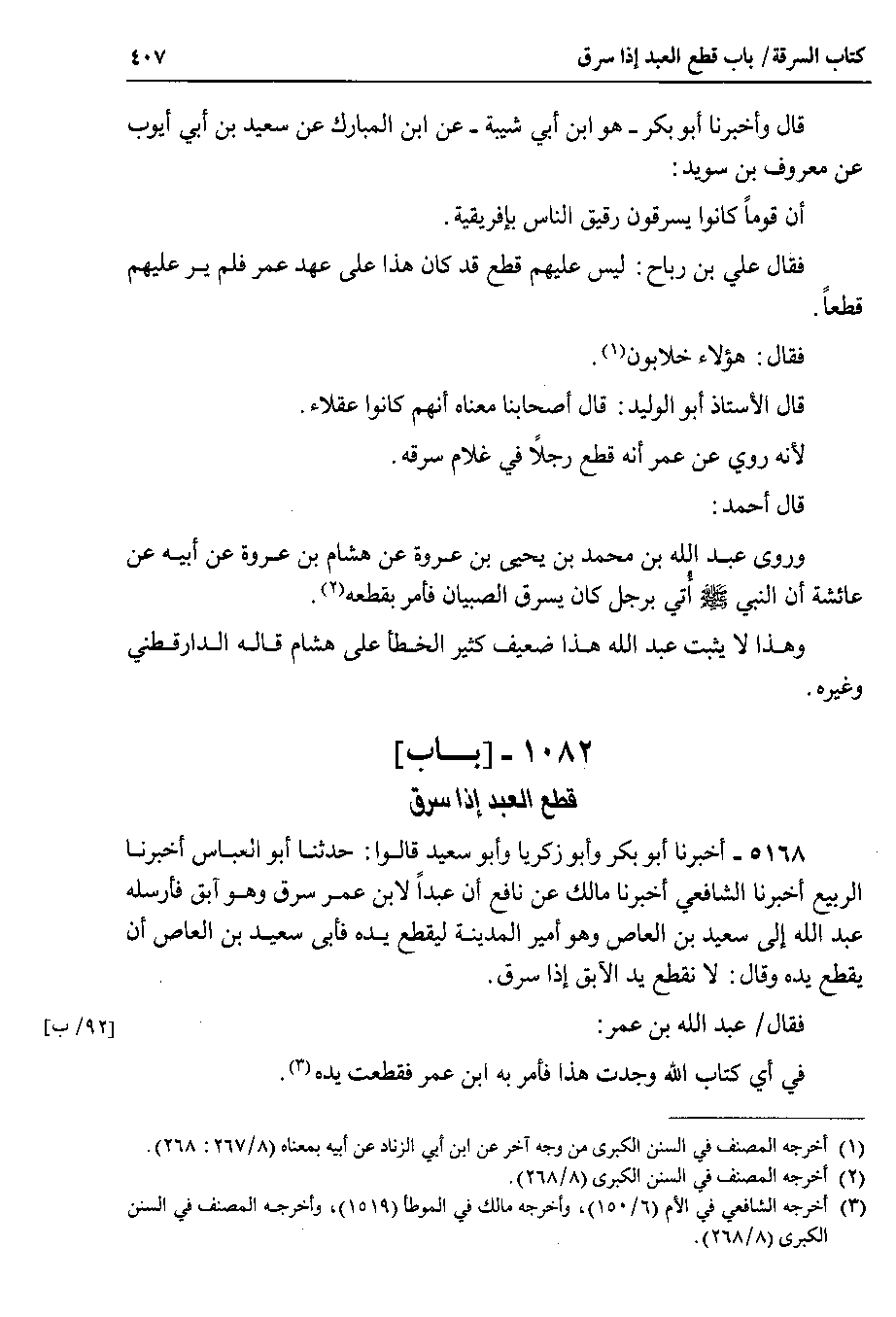 5168 - أخبرنا أبو بكر وأبو زكريا وأبو سعيد قالوا : حدثنا أبو العباس أخبرنا الربيع أخبرنا الشافعي أخبرنا مالك عن نافع أن عبداً لابن عمر سرق وهو آبق فأرسله عبد الله إلى سعيد بن العاص وهو أمير المدينة ليقطع يده فأبى سعيد بن العاص أن يقطع يده وقال : لا نقطع يد الآبق إذا سرق.