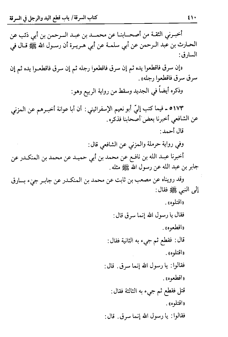 0 @أخبرني الثقة من أصحابنا عن محمد بن عبد الرحمن بن أبي ذئب عن الحارث بن عبد الرحمن عن أبي سلمة عن أبي هريرة أن رسول الله صلى الله عليه وسلم قال في السارق : إن سرق فاقطعوا يده ثم إن سرق فاقطعوا رجله ثم إن سرق فاقطعوا يده ثم إن سرق سرق فاقطعوا رجله.
