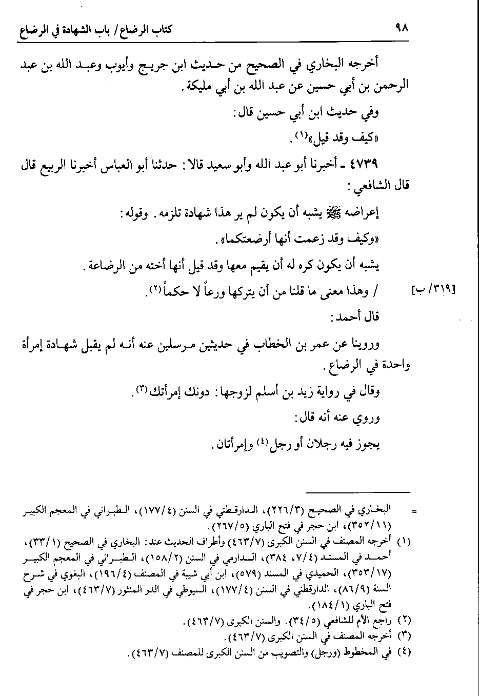 4739 - أخبرنا أبو عبد الله وأبو سعيد قالا : حدثنا أبو العباس أخبرنا الربيع قال قال الشافعي : إعراضه صلى الله عليه وسلم يشبه أن يكون لم ير هذا شهادة تلزمه . وقوله : وكيف وقد زعمت أنها أرضعتكما.