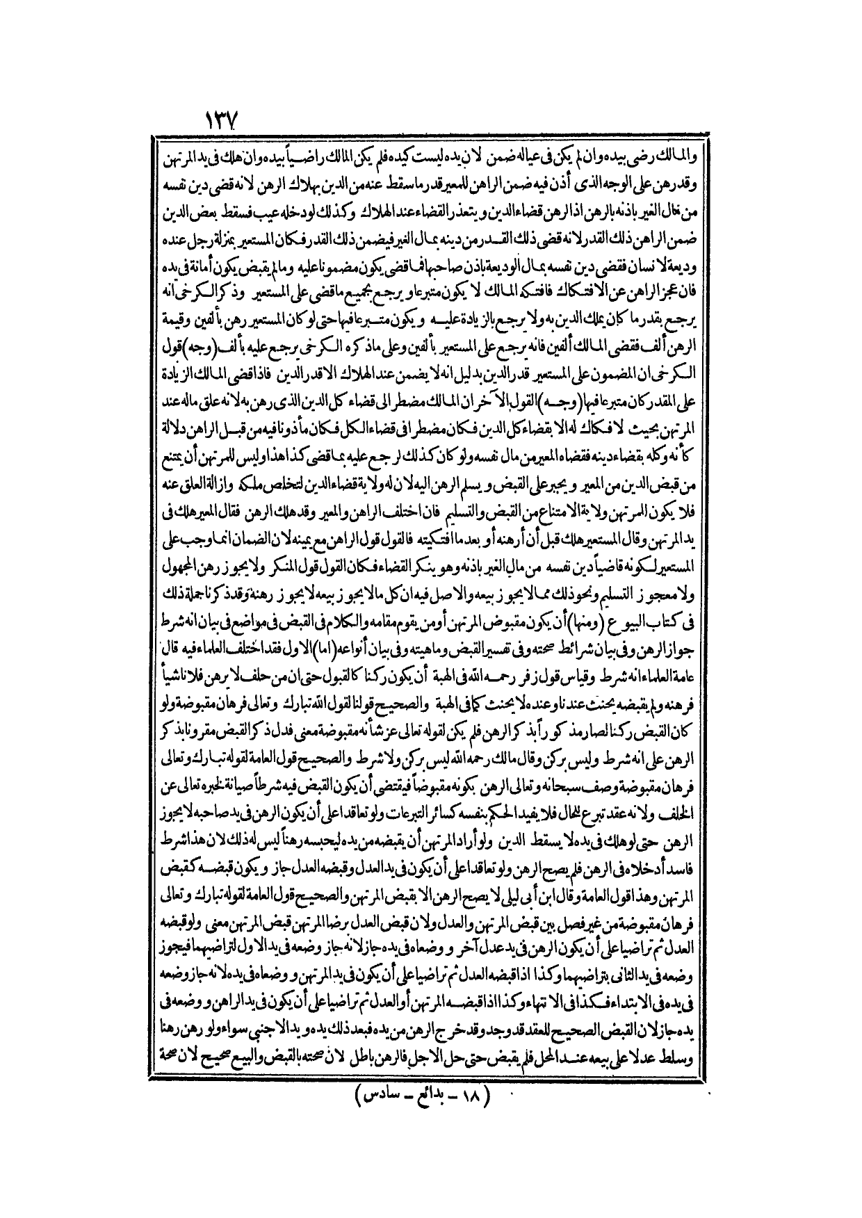 (وَمِنْهَا) : أَنْ يَكُونَ مَقْبُوضَ الْمُرْتَهِنِ أَوْ مَنْ يَقُومُ مَقَامَهُ وَالْكَلَامُ فِي الْقَبْضِ فِي مَوَاضِعَ: فِي بَيَانِ أَنَّهُ شَرْطُ جَوَازِ الرَّهْنِ، وَفِي بَيَانِ شَرَائِطِ صِحَّتِهِ، وَفِي تَفْسِيرِ الْقَبْضِ وَمَاهِيَّتِهِ، وَفِي بَيَانِ أَنْوَاعِهِ.