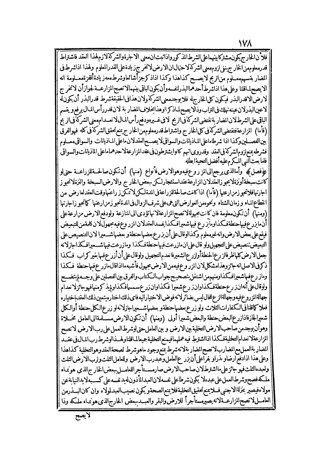 وَلَوْ دَفَعَ الْأَرْضَ مُزَارَعَةً عَلَى أَنَّ مَا يَزْرَعُ فِيهَا حِنْطَةً فَكَذَا، وَمَا يَزْرَعُ فِيهَا شَعِيرًا فَكَذَا يَفْسُدُ الْعَقْدُ؛ لِأَنَّ الْمَزْرُوعَ فِيهِ مَجْهُولٌ؛ لِأَنَّ كَلِمَةَ " مِنْ " لِلتَّبْعِيضِ فَيَقَعُ عَلَى بَعْضِ الْأَرْضِ، وَإِنَّهُ غَيْرُ مَعْلُومٍ، وَكَذَا لَوْ قَالَ: عَلَى أَنْ يَزْرَعَ بَعْضَهَا حِنْطَةً وَبَعْضَهَا شَعِيرًا؛ لِأَنَّ التَّنْصِيصَ عَلَى التَّبْعِيضِ تَنْصِيصٌ عَلَى التَّجْهِيلِ.