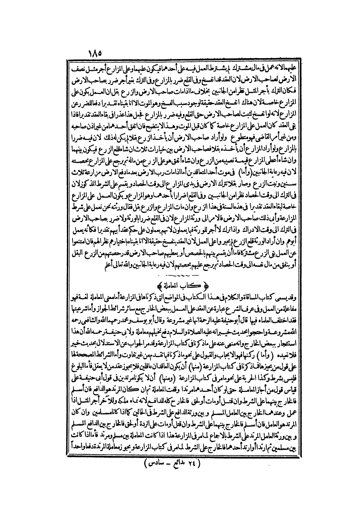 وَقَدْ يُسَمَّى كِتَابَ الْمُسَاقَاةِ، وَالْكَلَامُ فِي هَذَا الْكِتَابِ فِي الْمَوَاضِعِ الَّتِي ذَكَرْنَاهَا فِي الْمُزَارَعَةِ، أَمَّا مَعْنَى الْمُعَامَلَةِ لُغَةً: فَهُوَ مُفَاعَلَةٌ مِنْ الْعَمَلِ، وَفِي عُرْفِ الشَّرْعِ عِبَارَةٌ عَنْ الْعَقْدِ عَلَى الْعَمَلِ بِبَعْضِ الْخَارِجِ مَعَ سَائِرِ شَرَائِطِ الْجَوَازِ.
