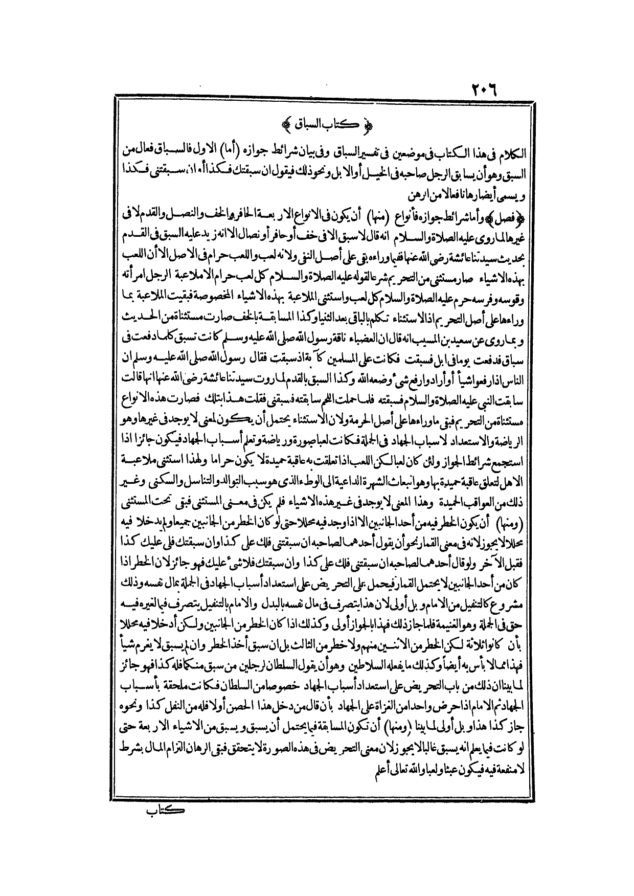 الْكَلَامُ فِي هَذَا الْكِتَابِ فِي مَوْضِعَيْنِ: فِي تَفْسِيرِ السِّبَاقِ، وَفِي بَيَانِ شَرَائِطِ جَوَازِهِ.
