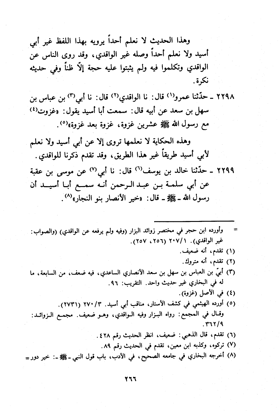 2298 - حَدَّثَنَا عَمْرٌو، قَالَ: نا الْوَاقِدِيُّ، قَالَ: نا أُبَيُّ بْنُ عَبَّاسِ بْنِ سَهْلِ بْنِ سَعْدٍ، عَنْ أَبِيهِ، قَالَ: سَمِعْتُ أَبَا أُسَيْدٍ، يَقُولُ: «§غَزَوْتُ مَعَ رَسُولِ اللَّهِ صَلَّى اللهُ عَلَيْهِ وَسَلَّمَ عِشْرِينَ غَزْوَةً غَزْوَةً بَعْدَ غَزْوَةٍ» . وَهَذِهِ الْحِكَايَةُ لَا نَعَلْمُهَا تُرْوَى إِلَّا عَنْ أَبِي أُسَيْدٍ، وَلَا نَعْلَمُ لِأَبِي أُسَيْدٍ طَرِيقًا غَيْرَ هَذَا الطَّرِيقِ، وَقَدْ تَقَدَّمَ ذِكْرُنَا لِلْوَاقِدِيِّ
