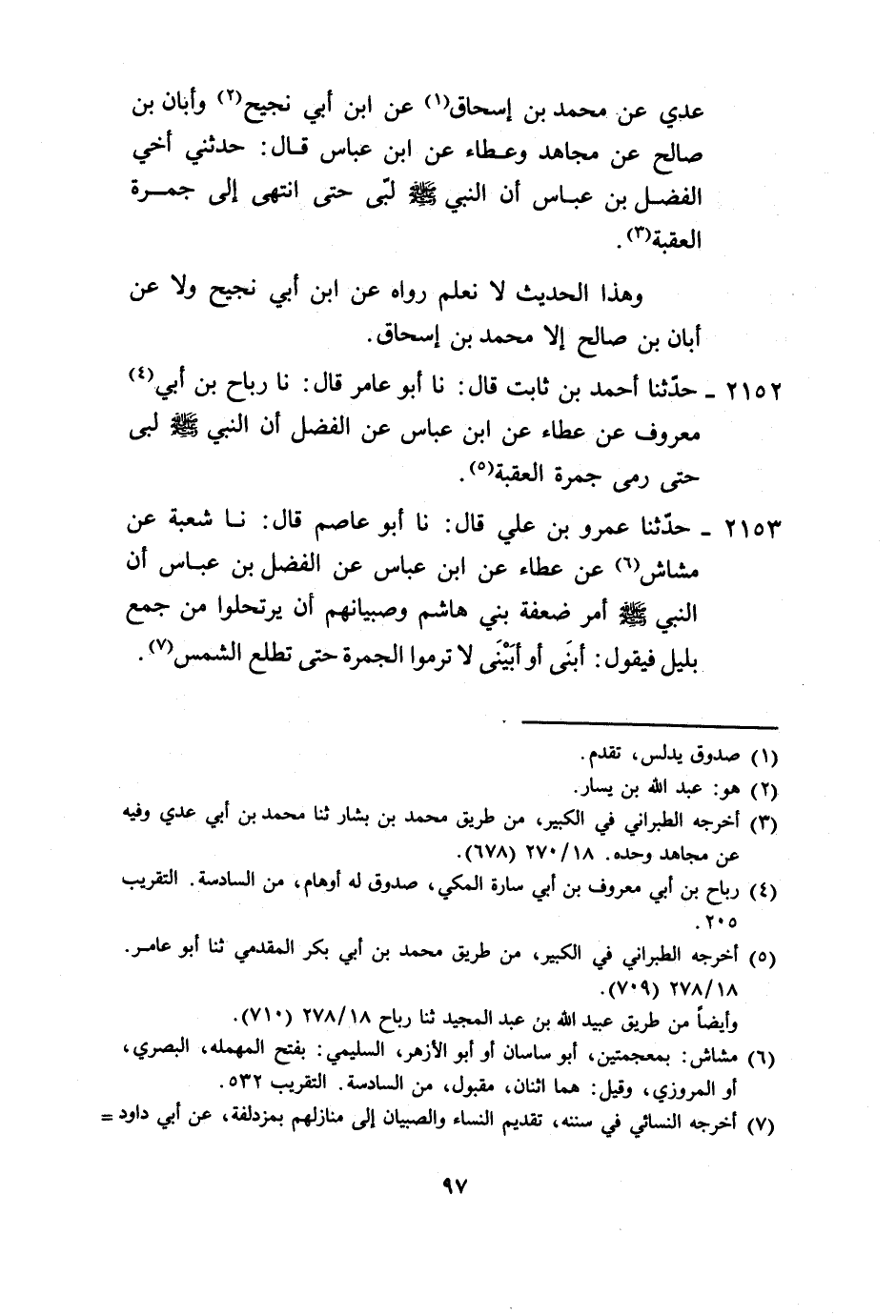 2153 - حَدَّثَنَا عَمْرُو بْنُ عَلِيٍّ، قَالَ: نا أَبُو عَاصِمٍ، قَالَ: نا شُعْبَةُ، عَنْ مُشَاشٍ، عَنْ عَطَاءٍ، عَنِ ابْنِ عَبَّاسٍ، عَنِ الْفَضْلِ بْنِ عَبَّاسٍ، أَنَّ النَّبِيَّ صَلَّى اللهُ عَلَيْهِ وَسَلَّمَ أَمَرَ ضَعَفَةَ بَنِي هَاشِمٍ وَصِبْيَانَهُمْ أَنْ يَرْتَحِلُوا مِنْ جَمْعٍ بِلَيْلٍ، فَيَقُولُ: «أَبَنِيَّ أَوْ أُبَيْنِيَّ §لَا تَرْمُوا الْجَمْرَةَ حَتَّى تَطْلُعَ الشَّمْسُ» -[98]-. وَهَذَا الْحَدِيثُ لَا نَحْفَظُهُ، عَنْ مُشَاشٍ أَبِي الْأَزْهَرِ، إِلَّا عَنْ شُعْبَةَ عَنْهُ