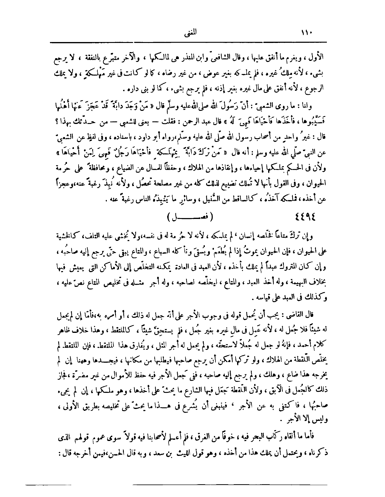 وَلَنَا مَا رَوَى الشَّعْبِيُّ، أَنَّ رَسُولَ اللَّهِ - صَلَّى اللَّهُ عَلَيْهِ وَسَلَّمَ - قَالَ: «مَنْ وَجَدَ دَابَّةً قَدْ عَجَزَ عَنْهَا أَهْلُهَا، فَسَيَّبُوهَا، فَأَخَذَهَا، فَأَحْيَاهَا، فَهِيَ لَهُ» . قَالَ عَبْدُ اللَّهِ بْنُ حُمَيْدٍ بْنِ عَبْدِ الرَّحْمَنِ: فَقُلْت - يَعْنِي لِلشَّعْبِيِّ -: مَنْ حَدَّثَك بِهَذَا؟ قَالَ: غَيْرُ وَاحِدٍ مِنْ أَصْحَابِ رَسُولِ اللَّهِ - صَلَّى اللَّهُ عَلَيْهِ وَسَلَّمَ -. رَوَاهُ أَبُو دَاوُد بِإِسْنَادِهِ. وَفِي لَفْظٍ عَنْ الشَّعْبِيِّ، عَنْ النَّبِيِّ - صَلَّى اللَّهُ عَلَيْهِ وَسَلَّمَ - أَنَّهُ قَالَ: «مَنْ تَرَكَ دَابَّةً بِمَهْلَكَةٍ، فَأَحْيَاهَا رَجُلٌ، فَهِيَ لِمَنْ أَحْيَاهَا»