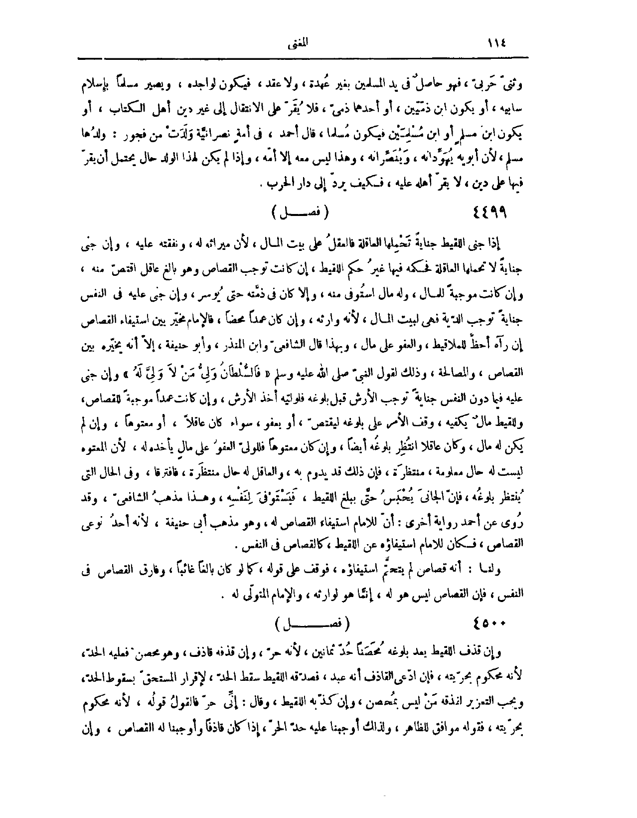 (٤٥٥٩) فَصْلٌ: إذَا جَنَى اللَّقِيطُ جِنَايَةً تَحْمِلُهَا الْعَاقِلَةُ، فَالْعَقْلُ عَلَى بَيْتِ الْمَالِ؛ لِأَنَّ مِيرَاثَهُ لَهُ، وَنَفَقَتَهُ عَلَيْهِ. وَإِنْ جَنَى جِنَايَةً لَا تَحْمِلُهَا الْعَاقِلَةُ، فَحُكْمُهُ فِيهَا غَيْرُ حُكْمِ اللَّقِيطِ؛ إنْ كَانَتْ تُوجِبُ الْقِصَاصَ وَهُوَ بَالِغٌ عَاقِلٌ، اُقْتُصَّ مِنْهُ، وَإِنْ كَانَتْ مُوجِبَةً لِلْمَالِ وَلَهُ مَالٌ، اُسْتُوْفِيَ مِنْهُ، وَإِلَّا كَانَ فِي ذِمَّتِهِ حَتَّى يُوسِرَ. وَإِنْ جُنِيَ عَلَيْهِ فِي النَّفْسِ جِنَايَةً تُوجِبُ الدِّيَةَ، فَهِيَ لِبَيْتِ الْمَالِ؛ لِأَنَّهُ وَارِثُهُ