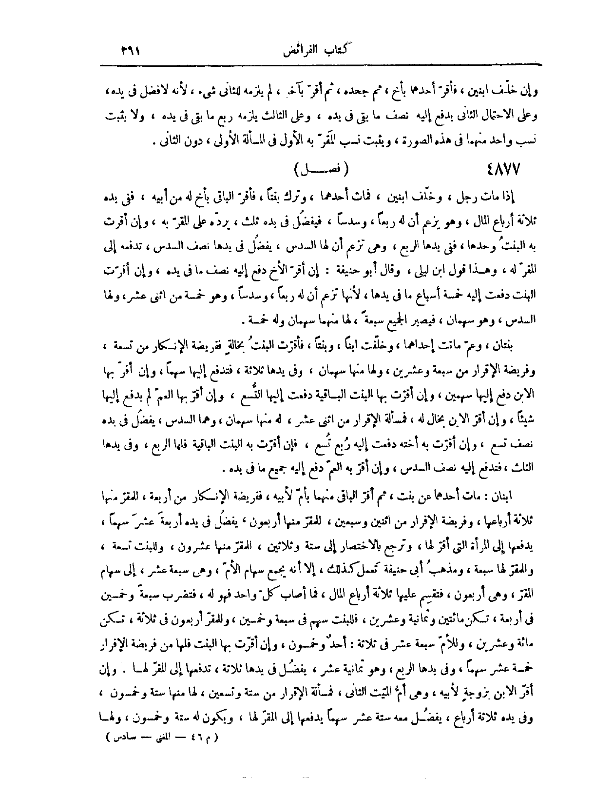 (٤٩٣٩) فَصْلٌ: إذَا مَاتَ رَجُلٌ، وَخَلَّفَ ابْنَيْنِ، فَمَاتَ أَحَدُهُمَا، وَتَرَكَ بِنْتًا، فَأَقَرَّ الْبَاقِي بِأَخٍ لَهُ مِنْ أَبِيهِ، فَفِي يَدِهِ ثَلَاثَةُ أَرْبَاعِ الْمَالِ، وَهُوَ يَزْعُمُ أَنَّ لَهُ رُبُعًا، وَسُدُسًا، فَيَفْضُلُ فِي يَدِهِ ثُلُثٌ يَرُدُّهُ عَلَى الْمُقَرِّ بِهِ. وَإِنْ أَقَرَّتْ بِهِ الْبِنْتُ وَحْدَهَا، فَفِي يَدِهَا الرُّبُعُ، وَهِيَ تَزْعُمُ أَنَّ لَهَا السُّدُسَ، يَفْضُلُ فِي يَدِهَا نِصْفُ السُّدُسِ، تَدْفَعُهُ إلَى الْمُقَرِّ لَهُ. وَهَذَا قَوْلُ ابْنِ أَبِي لَيْلَى