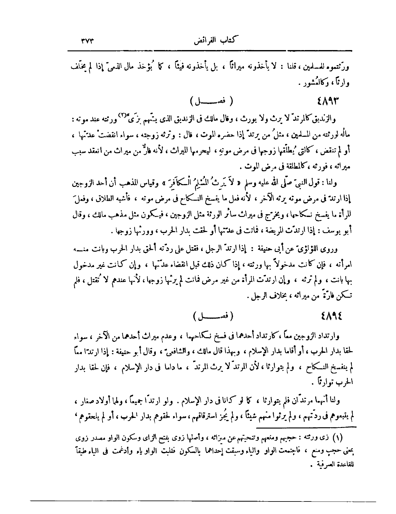 [فَصْلٌ الزِّنْدِيقُ لَا يَرِثُ وَلَا يُورَثُ]