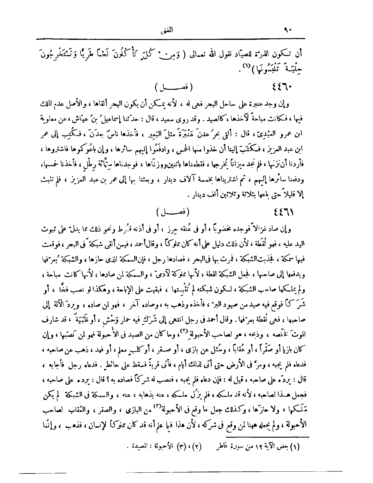 (٤٥٢١) فَصْلٌ: وَإِنْ صَادَ غَزَالًا، فَوَجَدَهُ مَخْضُوبًا، أَوْ فِي عُنُقِهِ حِرْزٌ، أَوْ فِي أُذُنِهِ قُرْطٌ، وَنَحْوَ ذَلِكَ مِمَّا يَدُلُّ عَلَى ثُبُوتِ الْيَدِ عَلَيْهِ، فَهُوَ لُقَطَةٌ؛ لِأَنَّ ذَلِكَ دَلِيلٌ عَلَى أَنَّهُ كَانَ مَمْلُوكًا. وَقَالَ أَحْمَدُ، فِي مَنْ أَلْقَى شَبَكَةً فِي الْبَحْرِ، فَوَقَعَتْ فِيهَا سَمَكَةٌ، فَجَذَبَتْ الشَّبَكَةَ، فَمَرَّتْ بِهَا فِي الْبَحْرِ، فَصَادَهَا رَجُلٌ، فَإِنَّ السَّمَكَةَ لِلَّذِي حَازَهَا، وَالشَّبَكَةُ يُعَرِّفُهَا وَيَدْفَعُهَا إلَى صَاحِبِهَا. فَجَعَلَ الشَّبَكَةَ لُقَطَةً؛ لِأَنَّهَا مَمْلُوكَةٌ لِآدَمِيٍّ، وَالسَّمَكَةَ لِمَنْ صَادَهَا؛ لِأَنَّهَا كَانَتْ مُبَاحَةً وَلَمْ يَمْلِكْهَا صَاحِبُ الشَّبَكَةِ، لِكَوْنِ شَبَكَتِهِ لَمْ تُثْبِتْهَا، فَبَقِيَتْ عَلَى الْإِبَاحَةِ، وَهَكَذَا لَوْ نَصَبَ فَخًّا أَوْ شَرَكًا، فَوَقَعَ فِيهِ صَيْدٌ مِنْ صَيُودِ الْبَرِّ، فَأَخَذَهُ وَذَهَبَ بِهِ، وَصَادَهُ آخَرُ، فَهُوَ لِمَنْ صَادَهُ، وَيَرُدُّ الْآلَةَ إلَى صَاحِبِهَا، فَهِيَ لُقَطَةٌ يُعَرِّفُهَا