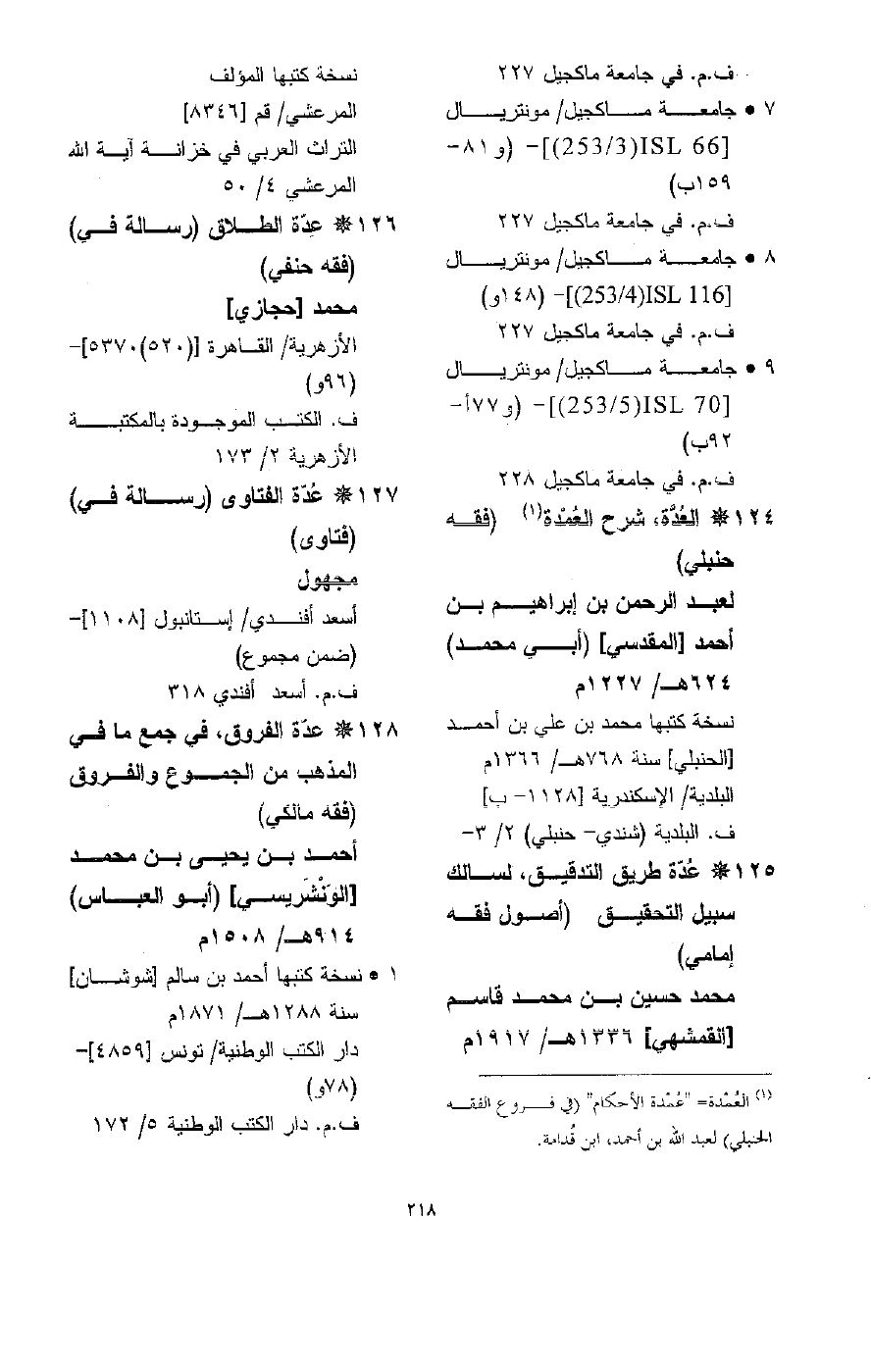 127( عُدّة الفتاوى (رسالة في) (فتاوى)