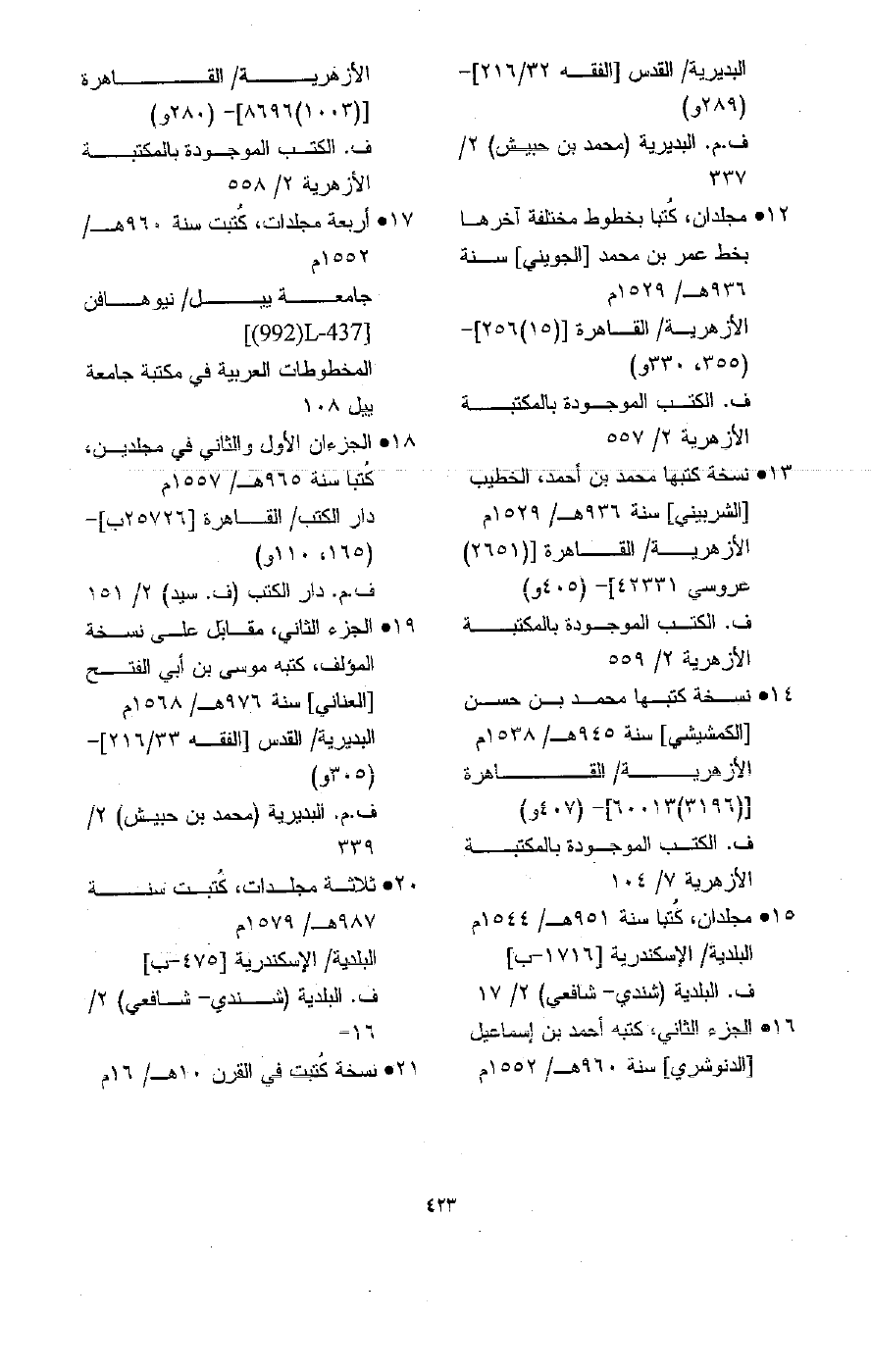 13( نسخة في ثلاثة مجلدات، كتبها محمد ابن يوسف (ابن الملاح( سنة 857هـ/ 1453م