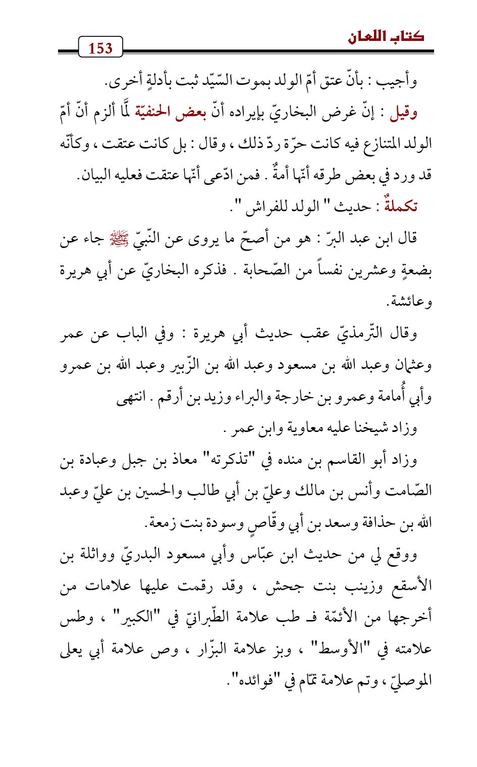 تكملةٌ: حديث " الولد للفراش ".