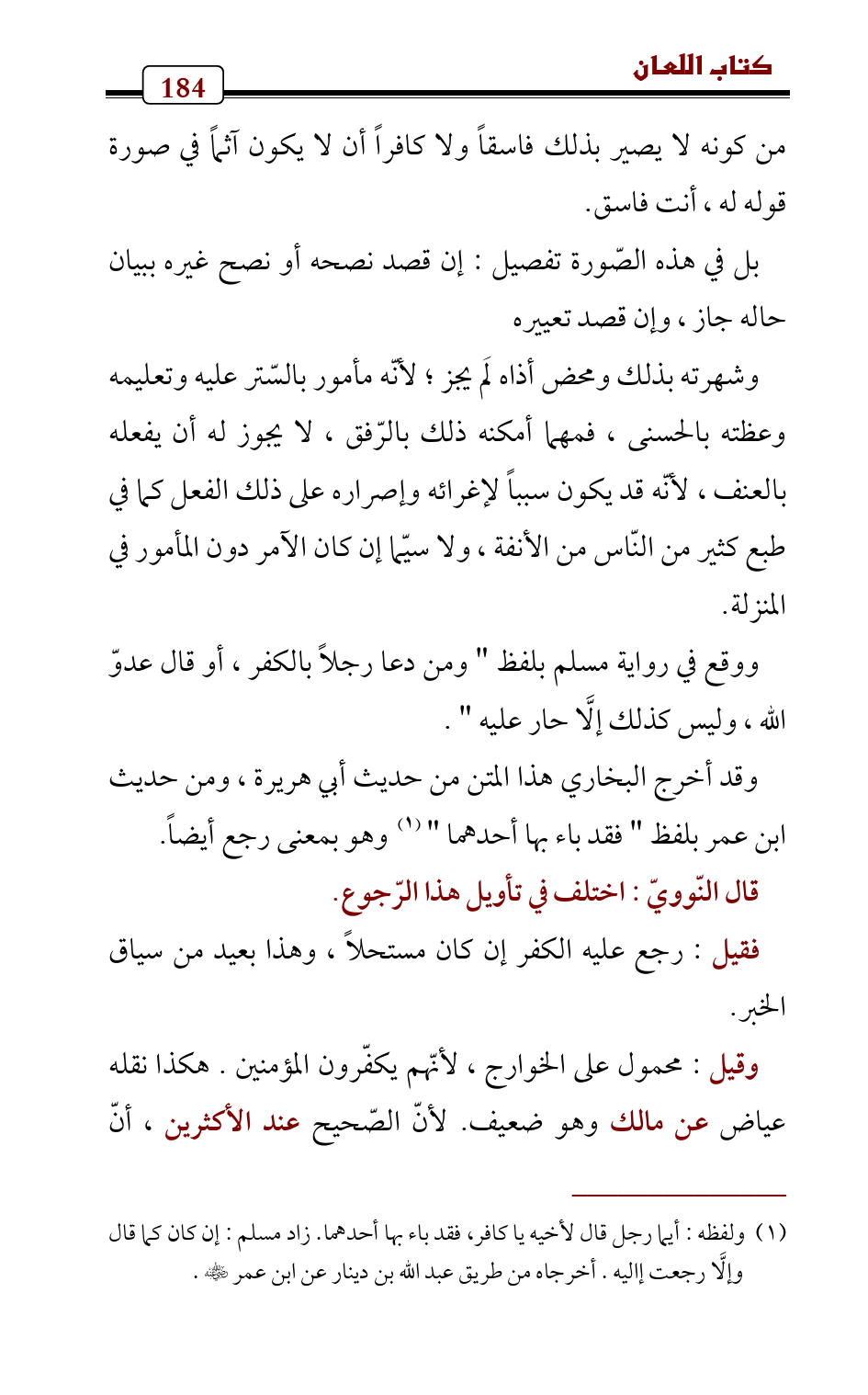 فقيل: رجع عليه الكفر إن كان مستحلاً، وهذا بعيد من سياق الخبر.