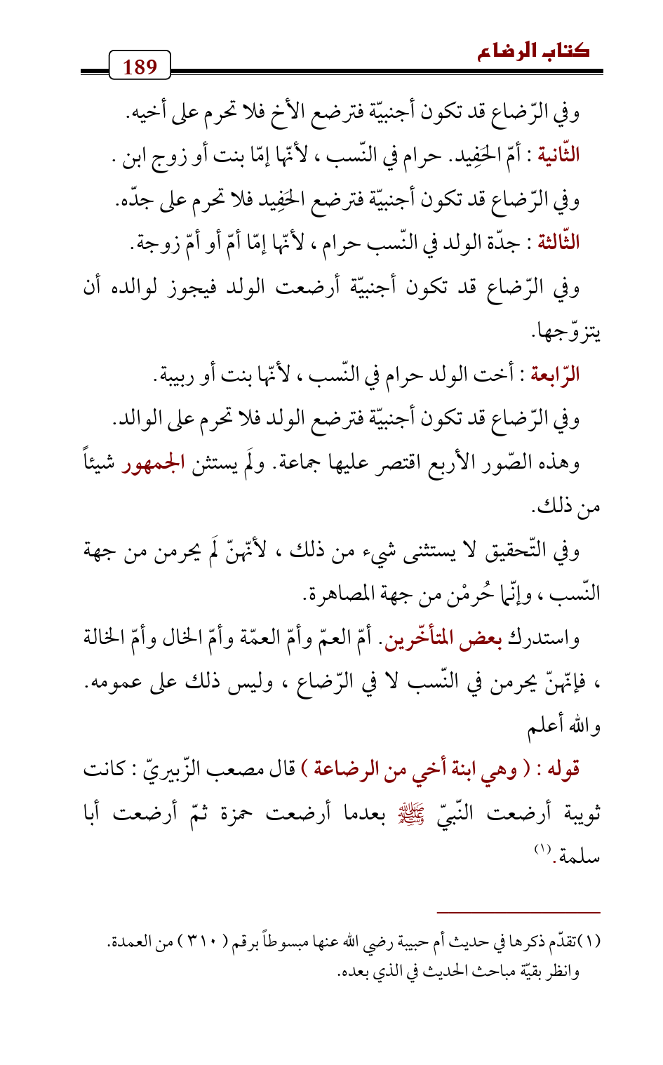 (¬1) تقدّم ذكرها في حديث أم حبيبة رضي الله عنها مبسوطاً برقم (310) من العمدة.