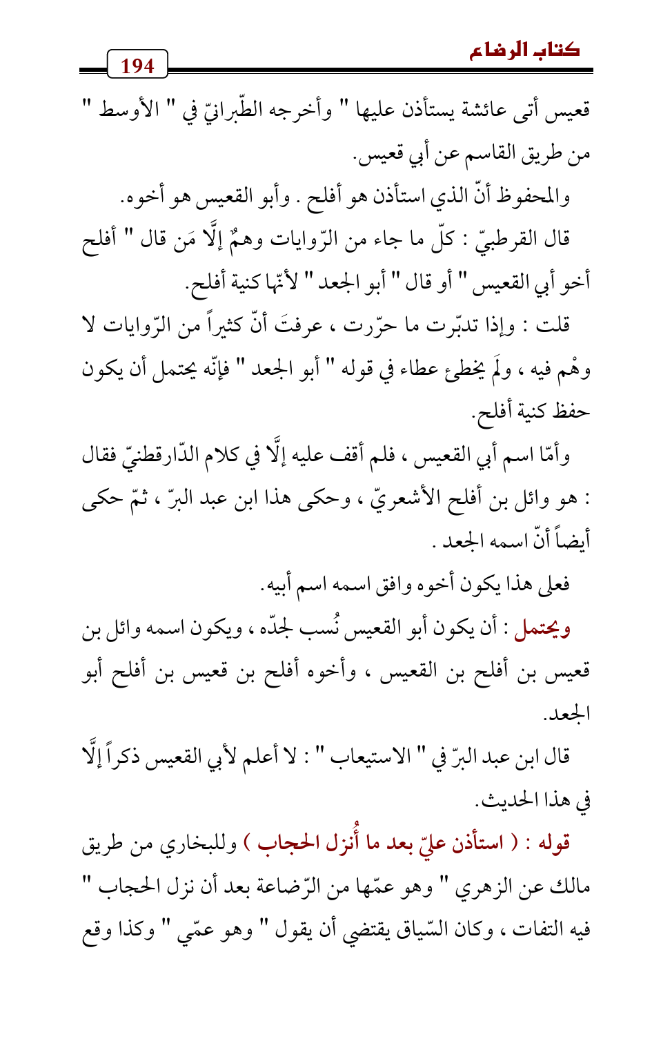 والمحفوظ أنّ الذي استأذن هو أفلح. وأبو القعيس هو أخوه.
