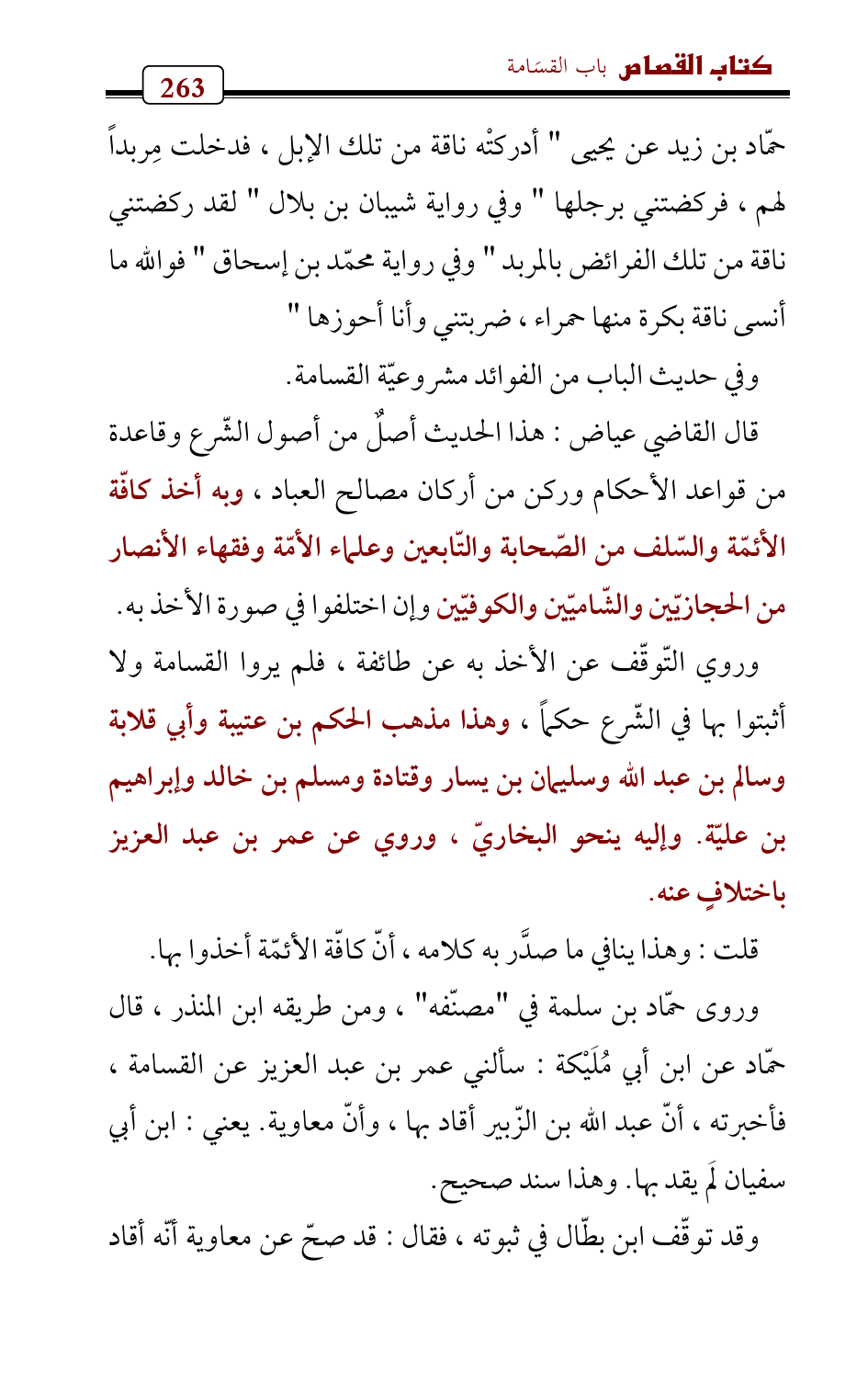 وروى حمّاد بن سلمة في " مصنّفه "، ومن طريقه ابن المنذر، قال حمّاد عن ابن أبي مُلَيْكة: سألني عمر بن عبد العزيز عن القسامة , فأخبرته , أنّ عبد الله بن الزّبير أقاد بها , وأنّ معاوية. يعني: ابن أبي سفيان لَم يقد بها. وهذا سند صحيح.