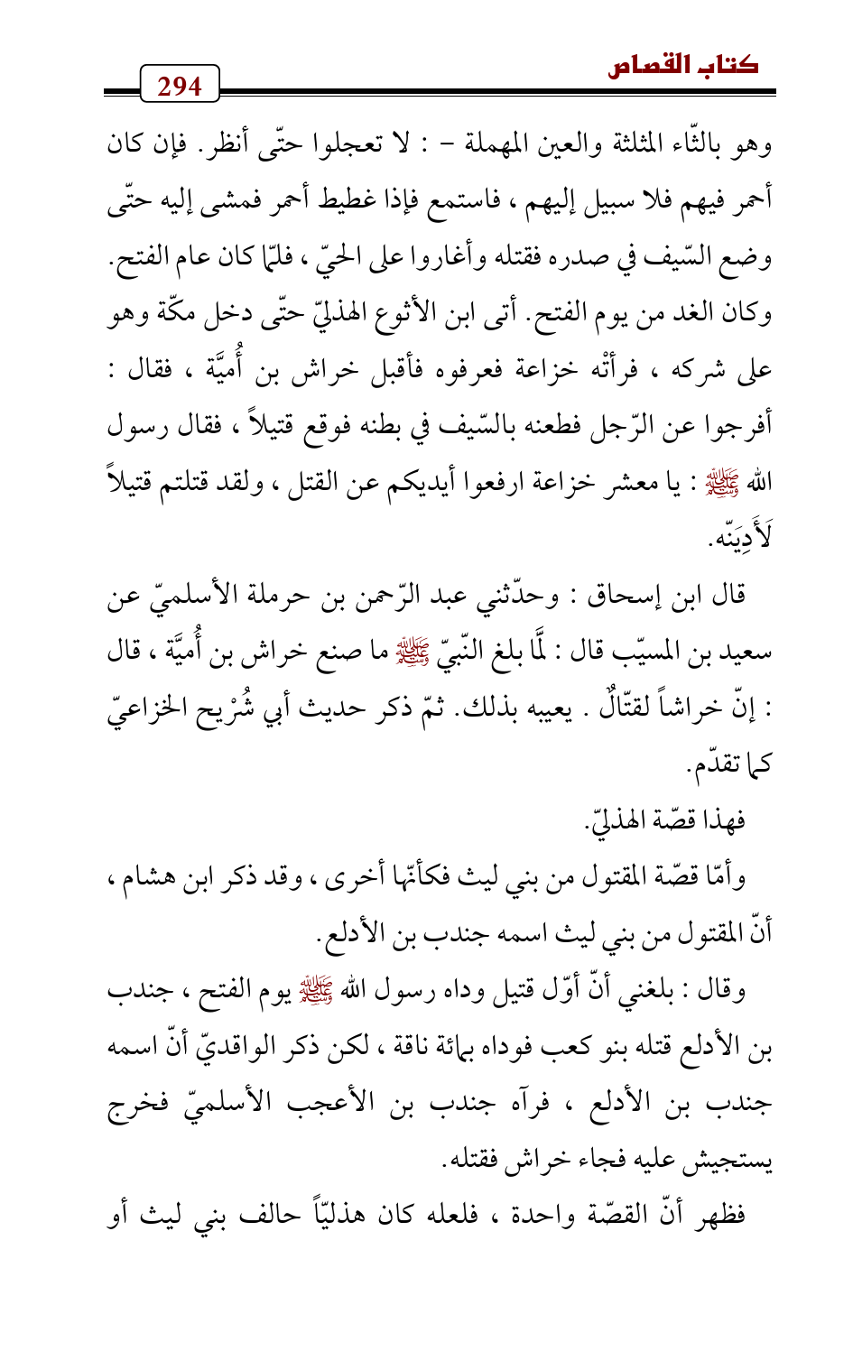 وأمّا قصّة المقتول من بني ليث فكأنّها أخرى، وقد ذكر ابن هشام , أنّ المقتول من بني ليث اسمه جندب بن الأدلع.