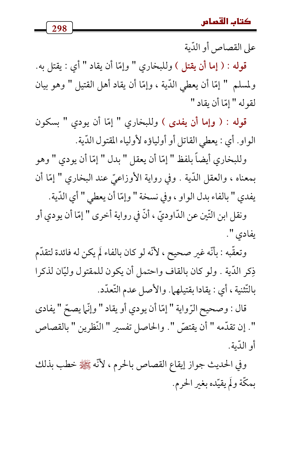 قال: وصحيح الرّواية " إمّا أن يودي أو يقاد " وإنّما يصحّ " يفادى ". إن تقدّمه " أن يقتصّ ". والحاصل تفسير " النّظرين " بالقصاص أو الدّية.