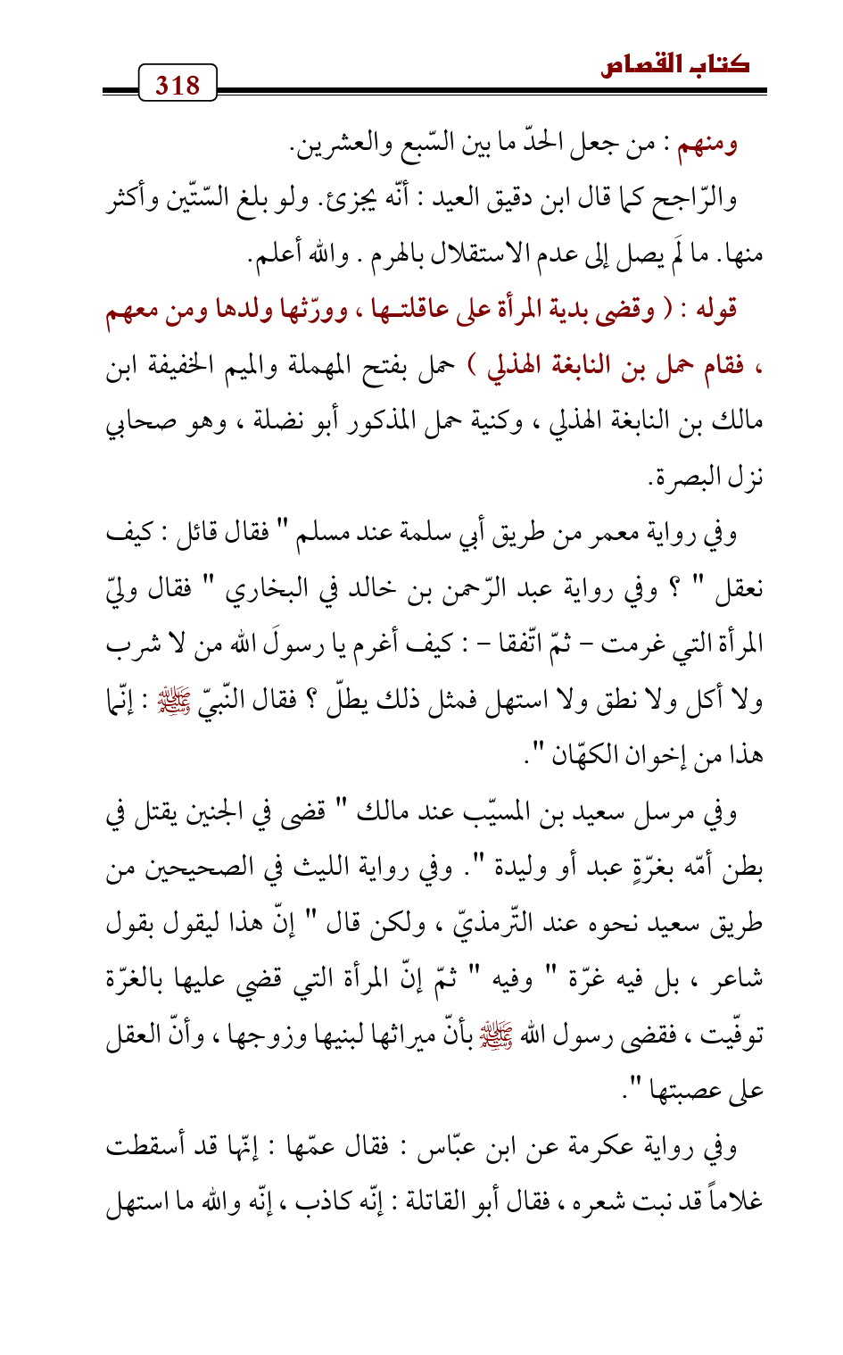 قوله: (وقضى بدية المرأة على عاقلتها، وورّثها ولدها ومن معهم , فقام حمل بن النابغة الهذلي) حمل بفتح المهملة والميم الخفيفة ابن مالك بن النابغة الهذلي , وكنية حمل المذكور أبو نضلة، وهو صحابي نزل البصرة.
