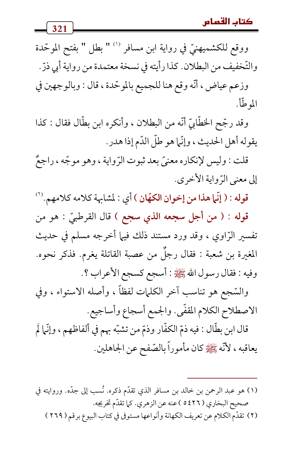 (¬2) تقدّم الكلام عن تعريف الكهانة وأنواعها مستوفى في كتاب البيوع برقم (269)
