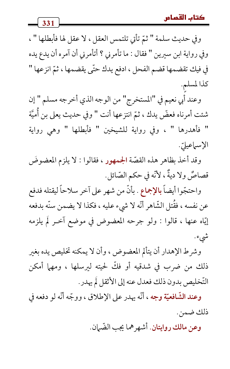 وقد أخذ بظاهر هذه القصّة الجمهور , فقالوا: لا يلزم المعضوضَ قصاصٌ ولا ديةٌ , لأنّه في حكم الصّائل.