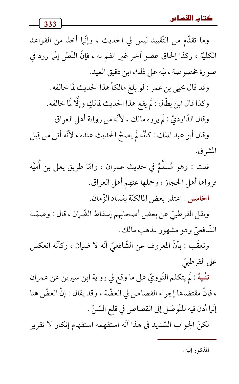 تنْبيهٌ: لَم يتكلم النّوويّ على ما وقع في رواية ابن سيرين عن عمران، فإنّ مقتضاها إجراء القصاص في العضّة، وقد يقال: إنّ العضّ هنا إنّما أذن فيه للتّوصّل إلى القصاص في قلع السّنّ.