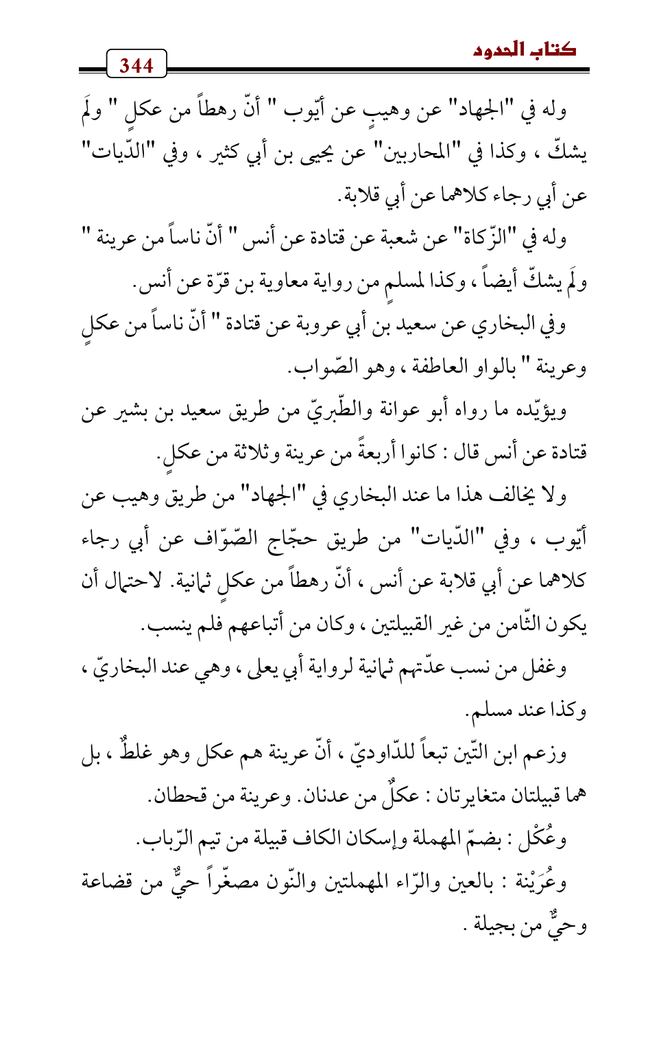 وزعم ابن التّين تبعاً للدّاوديّ , أنّ عرينة هم عكل وهو غلطٌ، بل هما قبيلتان متغايرتان: عكلٌ من عدنان. وعرينة من قحطان.