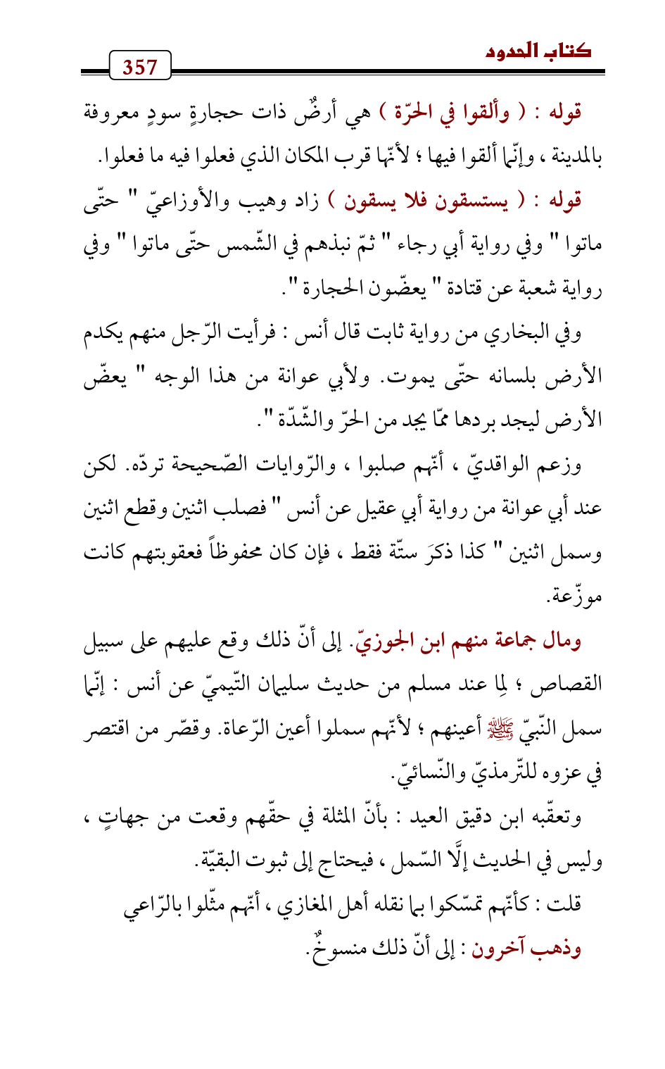 وتعقّبه ابن دقيق العيد: بأنّ المثلة في حقّهم وقعت من جهاتٍ , وليس في الحديث إلَّا السّمل , فيحتاج إلى ثبوت البقيّة.