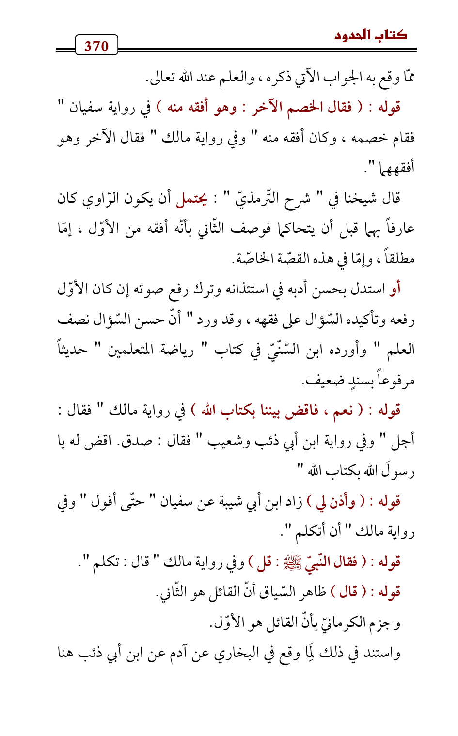 قوله: (فقال الخصم الآخر: وهو أفقه منه) في رواية سفيان " فقام خصمه , وكان أفقه منه " وفي رواية مالك " فقال الآخر وهو أفقههما ".