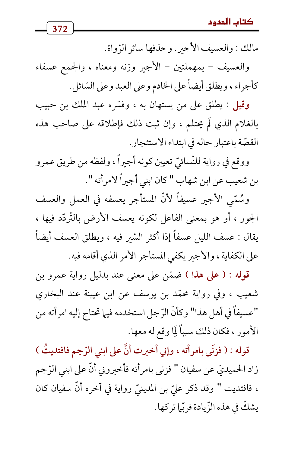 مالك: والعسيف الأجير. وحذفها سائر الرّواة.