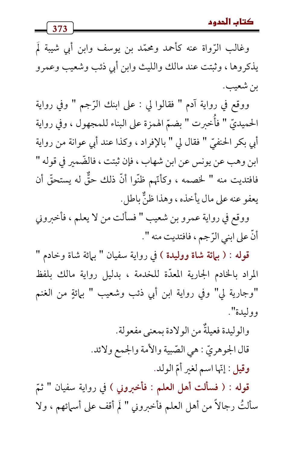 ووقع في رواية عمرو بن شعيب " فسألت من لا يعلم , فأخبروني أنّ على ابني الرّجم , فافتديت منه ".