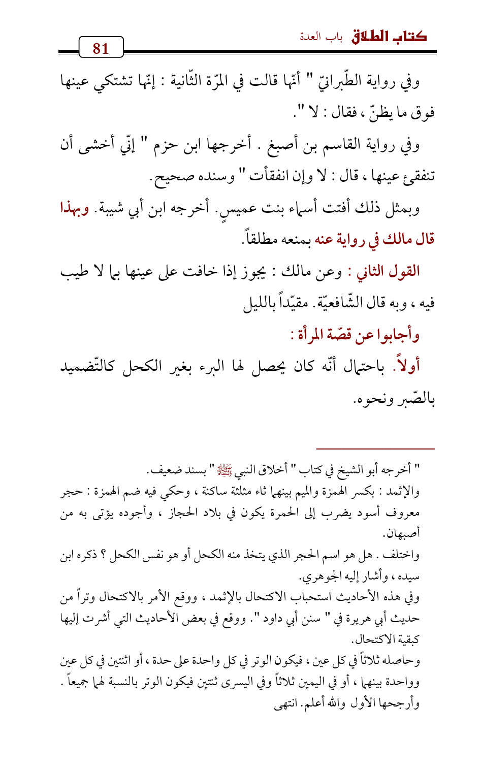 أولاً. باحتمال أنّه كان يحصل لها البرء بغير الكحل كالتّضميد بالصّبر ونحوه.
