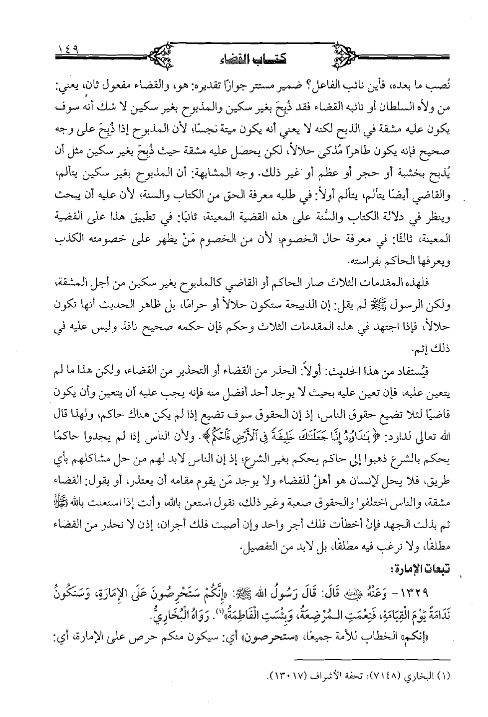 فلهذه المقدمات الثلاث صار الحاكم أو القاضي كالمذبوح بغير سكين من أجل المشقة، ولكن الرسول صلى الله عليه وسلم لم يقل: إن الذبيحة ستكون حلالاً أو حرامًا، بل ظاهر الحديث أنها تكون حلالاً، فإذا اجتهد في هذه المقدمات الثلاث وحكم فإن حكمه صحيح نافذ وليس عليه في ذلك إثم.