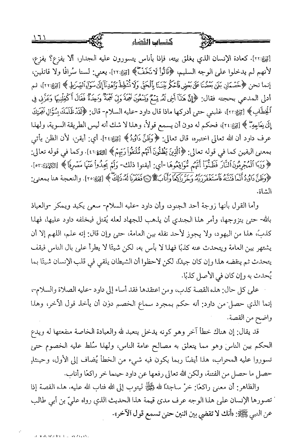 على كل حال: هذه القصة كذب، ومن اعتقدها فقد أساء إلى داود -عليه الصلاة والسلام-، إنما الذي حصل من داود: أنه حكم بمجرد سماع الخصم دون أن يأخذ قول الآخر، وهذا واضح من القصة.
