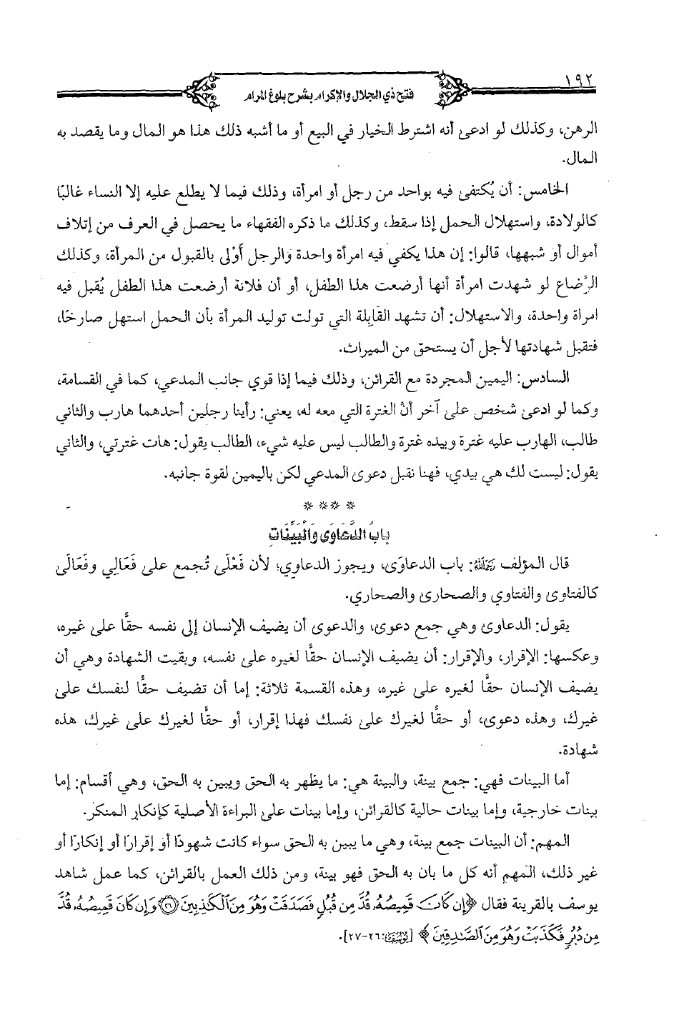 باب الدعاوي والبينات