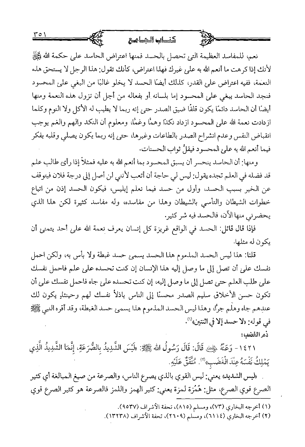 قلنا: هذا ليس الحسد المذموم هذا الحسد يسمى حسد غبطة ولا بأس به، ولكن احمل نفسك على أن تصل إلى ما وصل إليه هذا الإنسان إن كنت تحسده على علم فاحمل نفسك على طلب العلم حتى تصل إلى ما وصل إليه، إن كنت تحسده على جاه فاحمل نفسك على أن تكون حسن الأخلاق سليم الصدر محسناً إلى الناس باذلاً نفسك لهم وحينئذٍ يكون لك عندهم جاه وهلم جرا، وهذا ليس الحسد المذموم هذا يسمى حسد الغبطة، وقد أقره النبي صلى الله عليه وسلم في قوله: "لا حسد إلا في اثنتين".